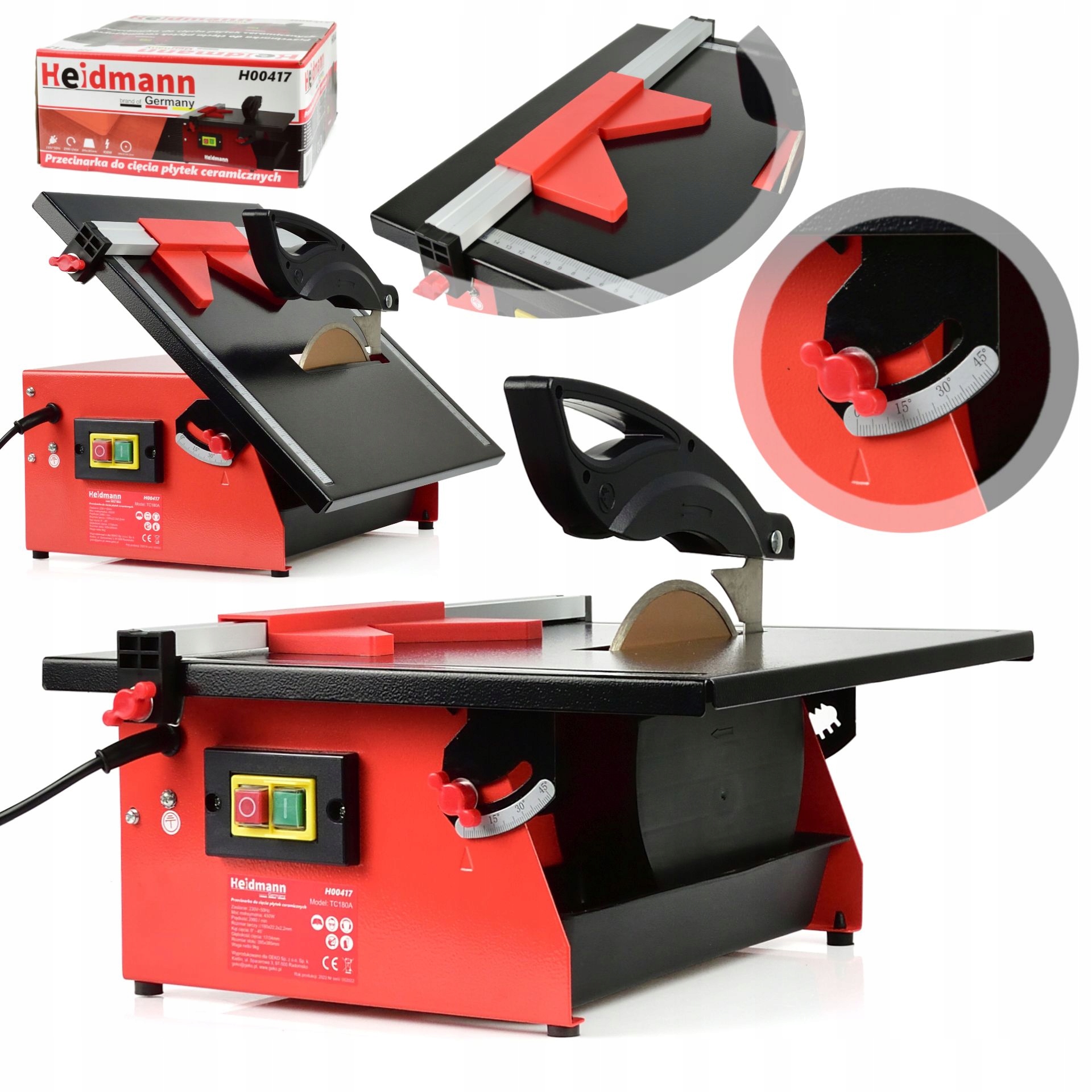 ⭐ Плиткорез Heidmann. Оснащен электродвигателем мощностью 450 Вт, приводящим в движение алмазный диск диаметром 180 мм со скоростью вращения 2990 об/мин