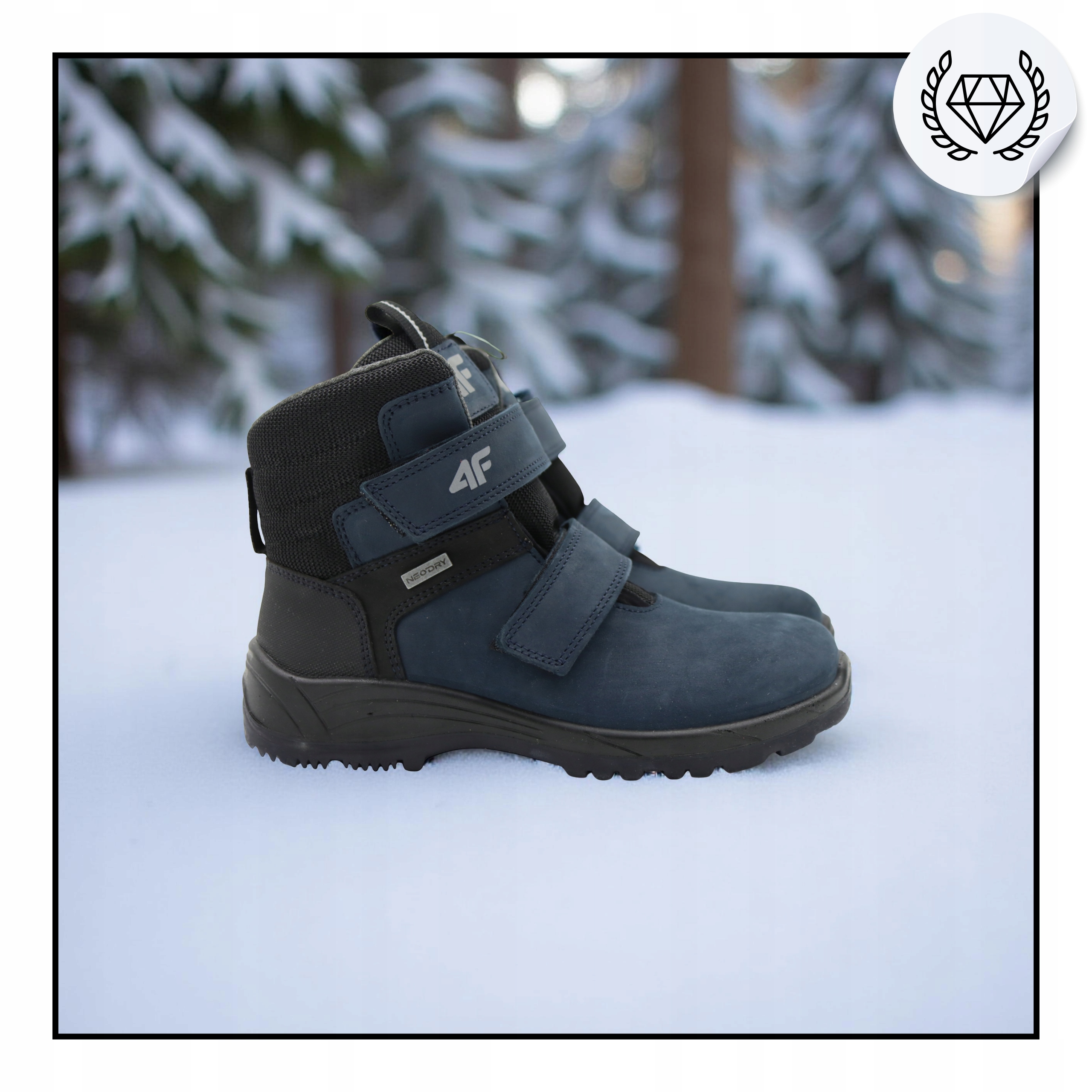 4F Junior Trek — зимняя треккинговая обувь для детей, обеспечивающая максимальный комфорт, тепло и защиту в холодные дни. Высококачественные материалы, в том числе натуральный нубук и мембрана NeoDry, гарантируют надежность даже в сложных погодных условиях. Благодаря липучкам обувь легко надевать, а внутренняя подкладка из синтетической овчины обеспечивает отличный тепловой комфорт. Идеально подходит как для зимних прогулок, так и для повседневного использования – в школу, детский сад или на праздники.