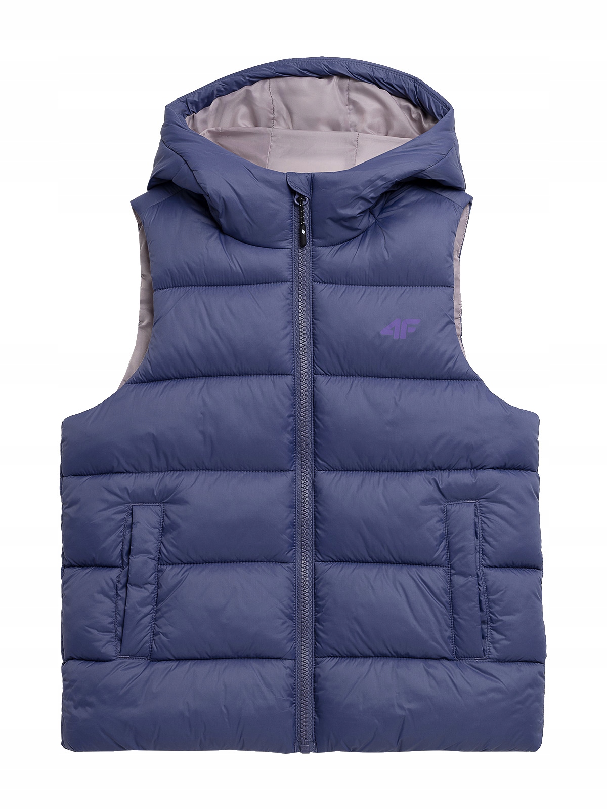 Стеганый пуховый жилет с капюшоном для девочек из последней коллекции 4F. Наполнен синтетическим пухом, который в сочетании с технологией 4Warm обеспечивает тепловой комфорт в холодные дни. Легкая конструкция и правильный крой обеспечивают свободу движений и активность во время использования.