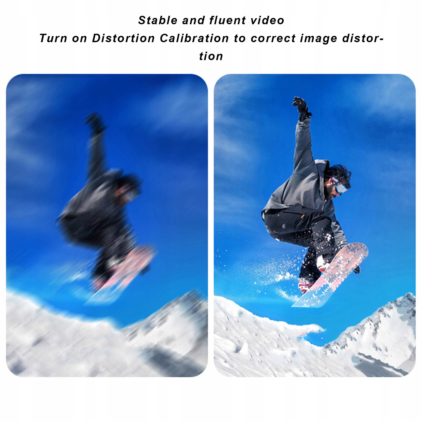 2. Стабильное и плавное видео. Эта головная камера 4K позволяет снимать исключительно качественные кадры в движущихся ситуациях без коктейлей. Включите калибровку искажений, чтобы исправить искажения изображения.