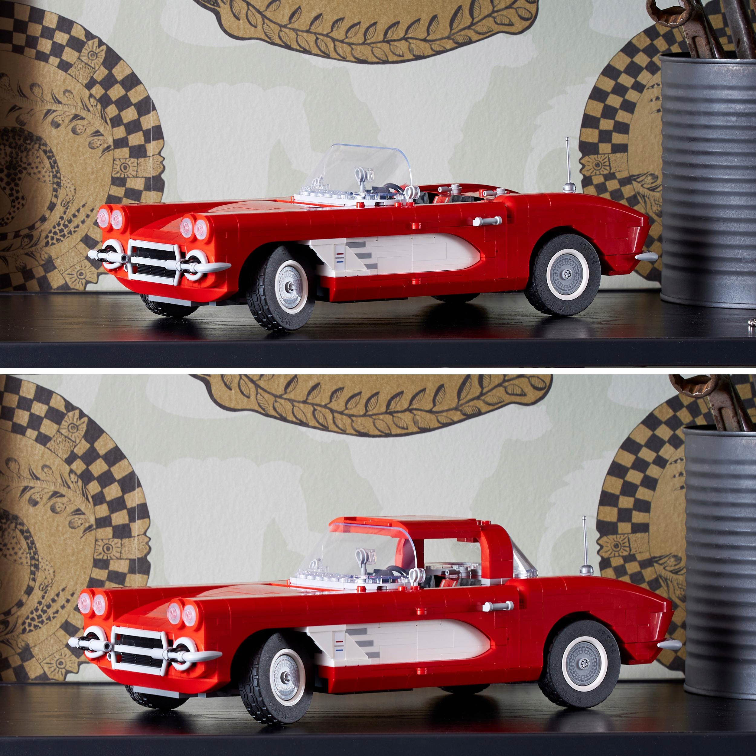 С помощью нашей модели LEGO Icons вы сможете воссоздать из кубиков этот культовый огненно-красный кабриолет. Он настолько утончен, что вы почти чувствуете, как скользите на нем по улицам, а ветер развевает ваши волосы. Оригинальная белая полоса, характерное лобовое стекло, мощный двигатель и багажник — это лишь некоторые из элементов, которые вы соберете. Да, и не забудьте украсить свое творение логотипом Corvette на капоте!