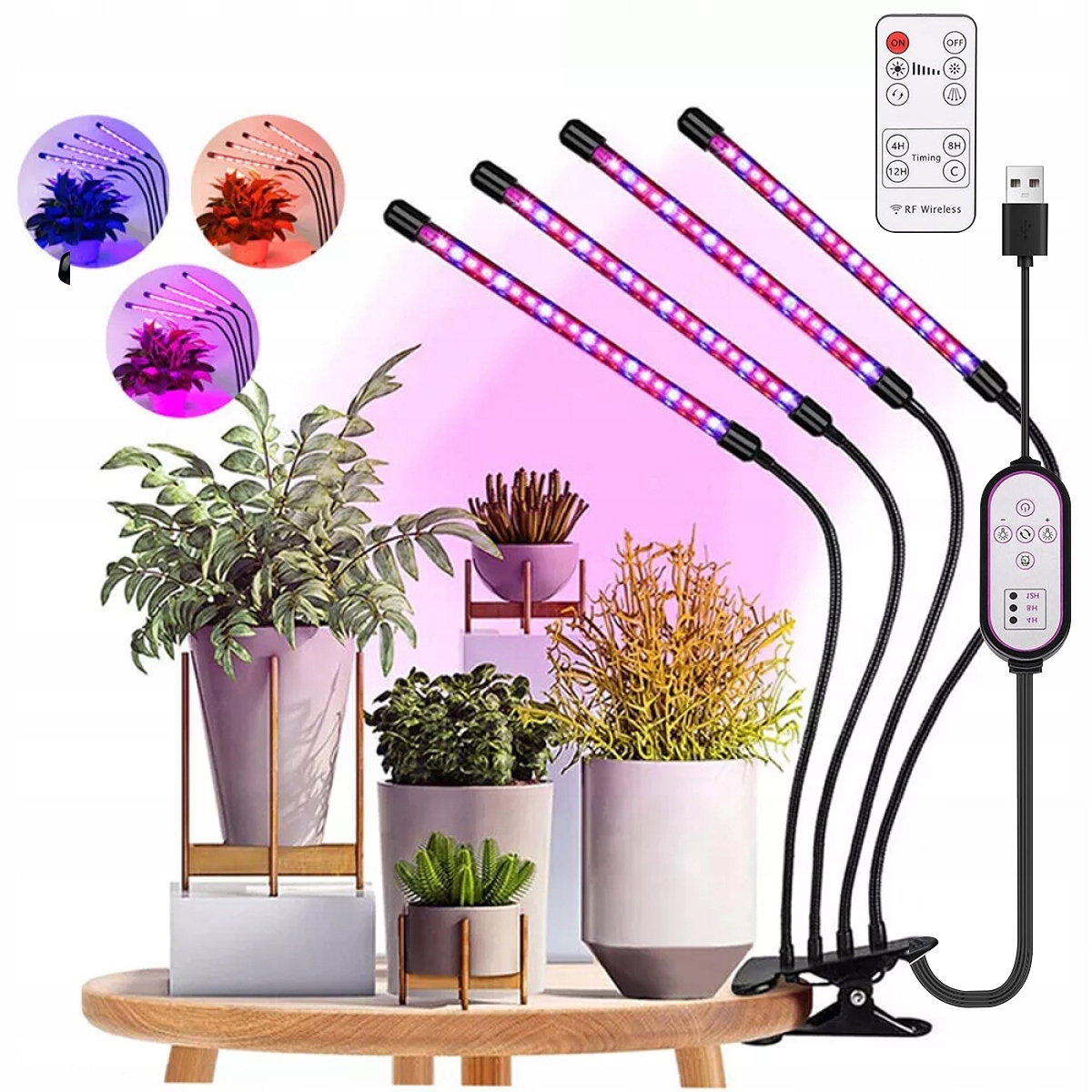 4x 80x светодиодная лампа для роста растений, полный спектр, USB-таймер + пульт дистанционного управления