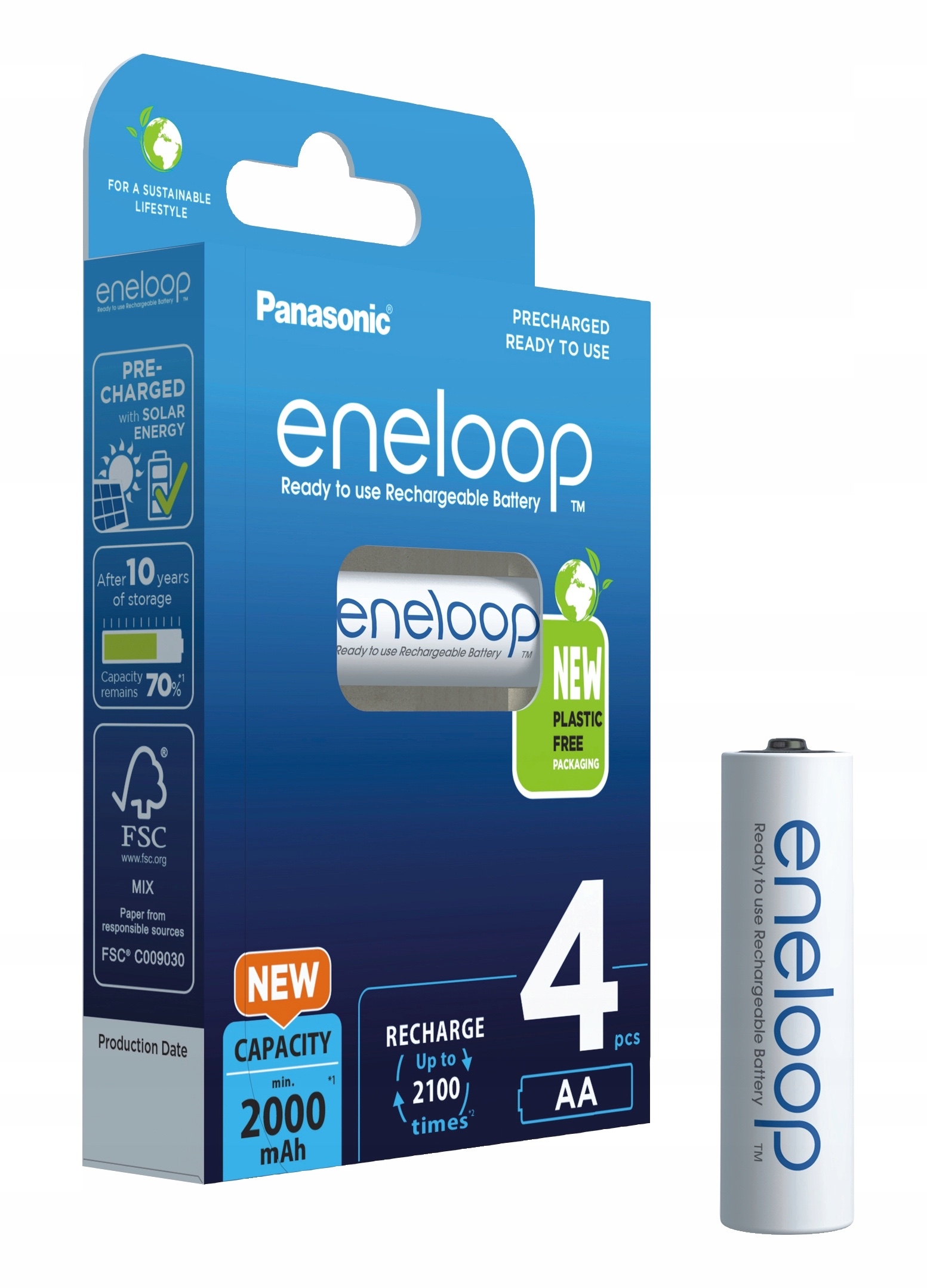 eneloop — это новое поколение экологических батарей, предварительно заряженных, экономящих энергию и деньги, пригодных для вторичной переработки, долговечных батарей, которые можно заряжать и разряжается до 2100 раз. Их японский дизайн и японское производство продаются в более чем 80 странах мира.