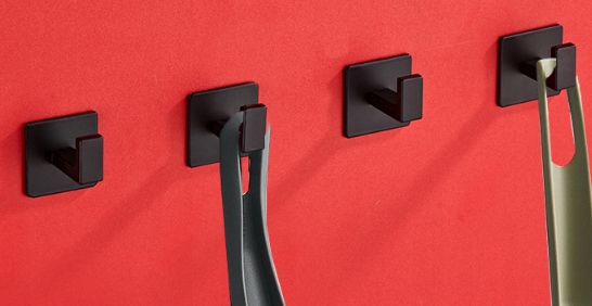 - Их чрезвычайно легко установить с помощью прилагаемой самоклеющейся ленты (ВНИМАНИЕ! Перед установкой обязательно очистите поверхность, на которую будут приклеены вешалки.)