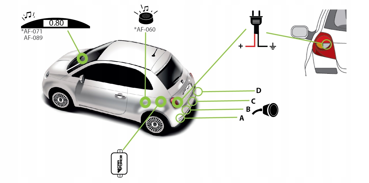 Комплект датчиков заднего хода облегчает маневрирование автомобиля и повышает уровень безопасности при движении задним ходом или парковке. Система издает звуковые сигналы с частотой, которая увеличивается с уменьшением расстояния от препятствия. Парковочные датчики CarForce обнаруживают даже небольшие препятствия — они очень чувствительны!