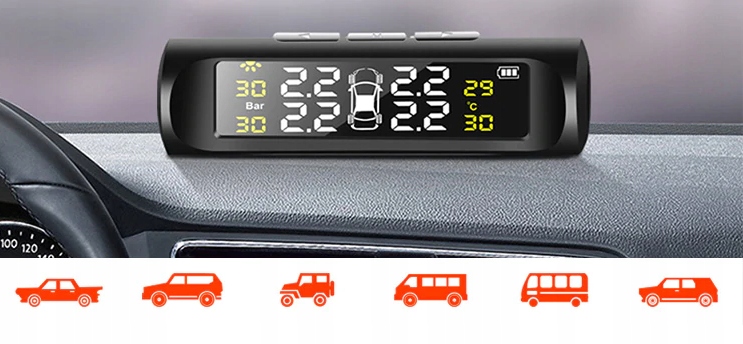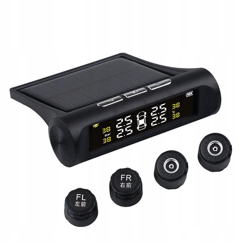 Набор датчиков TPMS обеспечит вашу безопасность на дороге. Он будетконтролировать давление и температуру в шинах. В течение 3 секунд после изменения давления комплект отправит информацию на цветной ЖК-приемник, питаемый от солнца благодаря встроенной солнечной панели. В пасмурную погоду или ночью дисплей можно запитать с помощью кабеля mini USB. Если изменения давления и температуры не резкие, датчики, установленные на клапанах, отправляют информацию раз в 3 минуты.