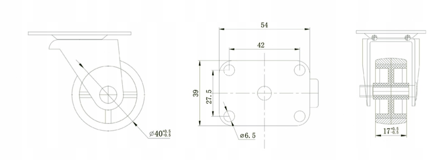 4x ГУМОВЕ МЕБЛЕВЕ ПОВОРОТНЕ КОЛЕСО FI40 MM LB