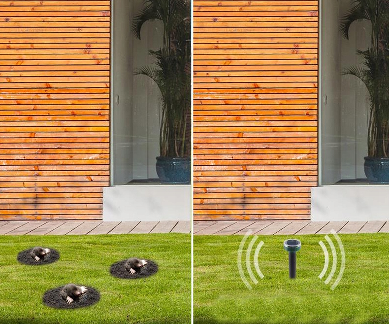 Частота, излучаемая этим устройством, неприятна для таких животных, как кроты, полевки, крысы, мыши, куницы и другие грызуны, что эффективно отпугивает их приближаться к обозначенной области.