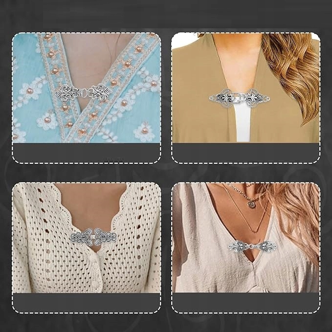 Элегантность сочетается с функциональностью благодаря нашему набору из четырех серебряных декоративных зажимов для застегивания свитеров и кардиганов. Эти зажимы, вдохновленные винтажным стилем Y2K, не только практичны, но и придают характер и стиль любому наряду. Эти зажимы идеально подходят для самых разных тканей и станут прекрасным дополнением вашего гардероба, сочетая в себе модный образ и комфорт.