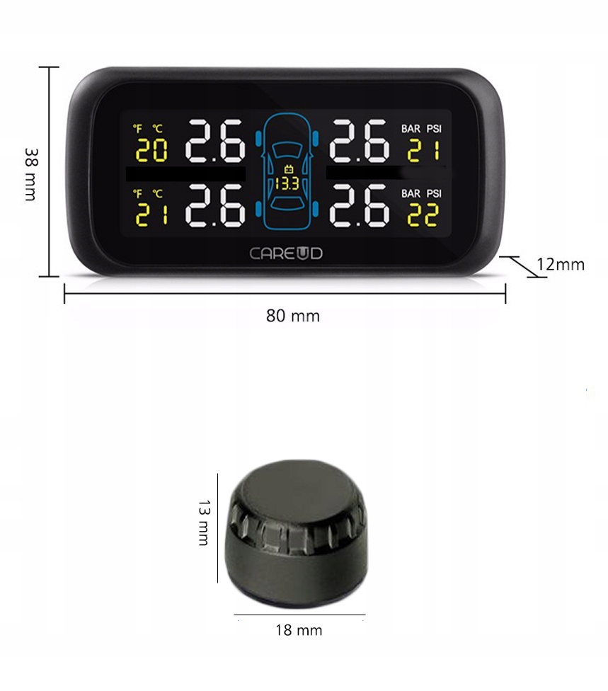 Предлагаем Вам оригинальный комплект беспроводных датчиков давления и температуры для автомобилей уважаемого бренда CAREUD.