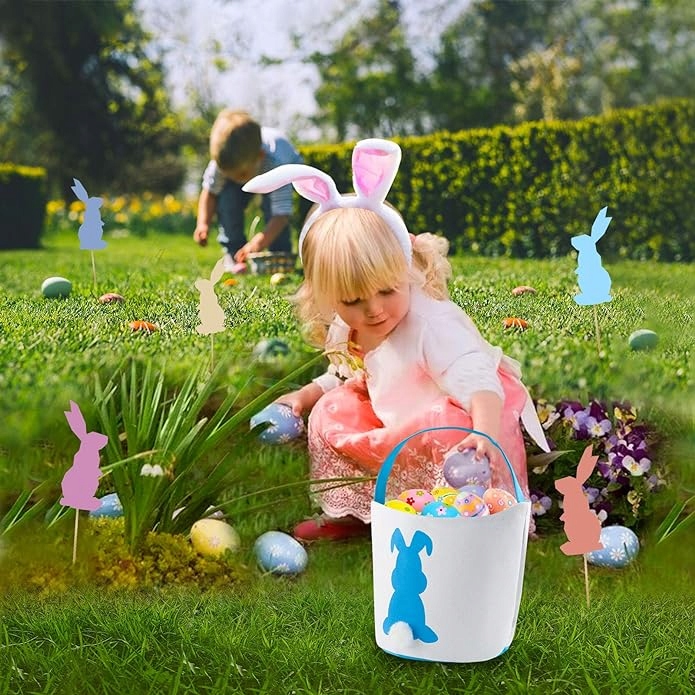 Что вы получите: В комплект входят 4 пасхальных кролика (розовый, синий, зеленый, фиолетовый); размер: 23 см (9,06 дюйма (ширина) х 25 см (высота); ручка 3 х 46 см (удлиненная длина). Идеальный размер для хранения и украшения различных подарков и личных вещей