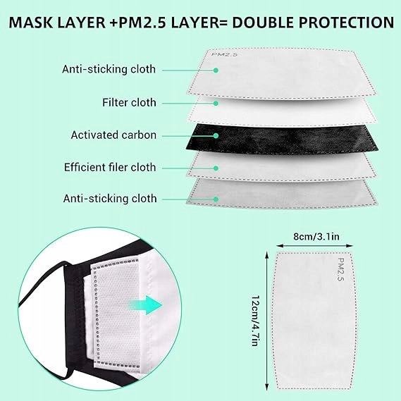 - С 4 дополнительными фильтрами. 5-слойный фильтр состоит из 2 слоев не-ПП. тканый материал, 2 слоя нетканого материала, полученного экструзией с раздувом из расплава, и 1 слой активированного угля, который помогает предотвратить попадание пыли и других мелких частиц. блокируют переносимые по воздуху загрязняющие вещества, такие как пыльца, пыль, мелкие частицы, растительное масло, пассивное курение, неприятный газ и т. д.