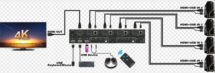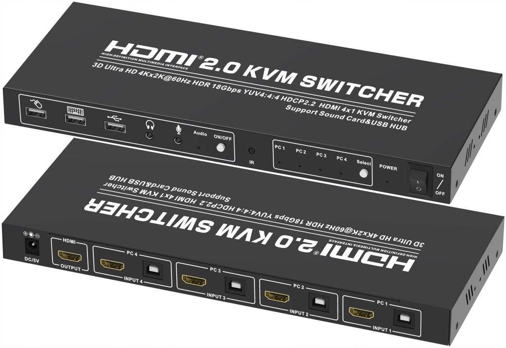 4K HDMI KVM 4x1 Switcher 3D — идеальное решение для тех, кто ищет эффективный способ управления несколькими устройствами в среде, где качество изображения и простота использования являются ключевыми факторами.