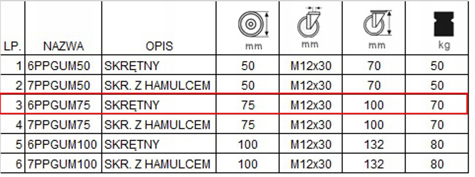 4x6PPGUM75 колесо fi75 тролейбусна шафа настільний кріпильний набір з 4 шт.