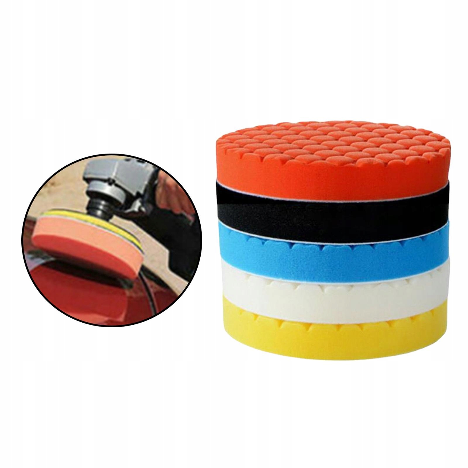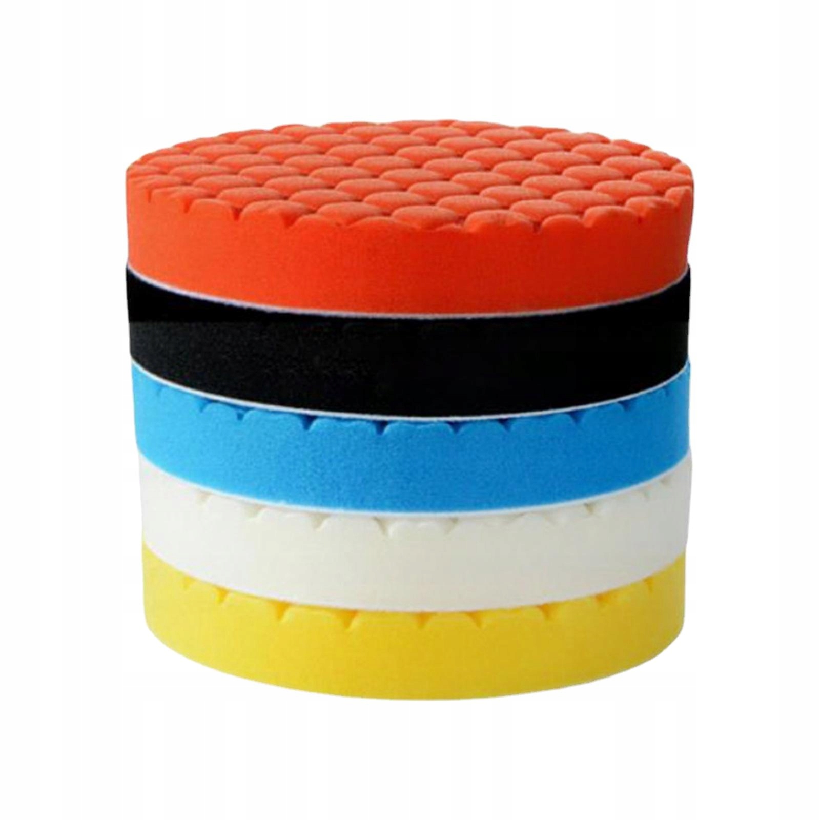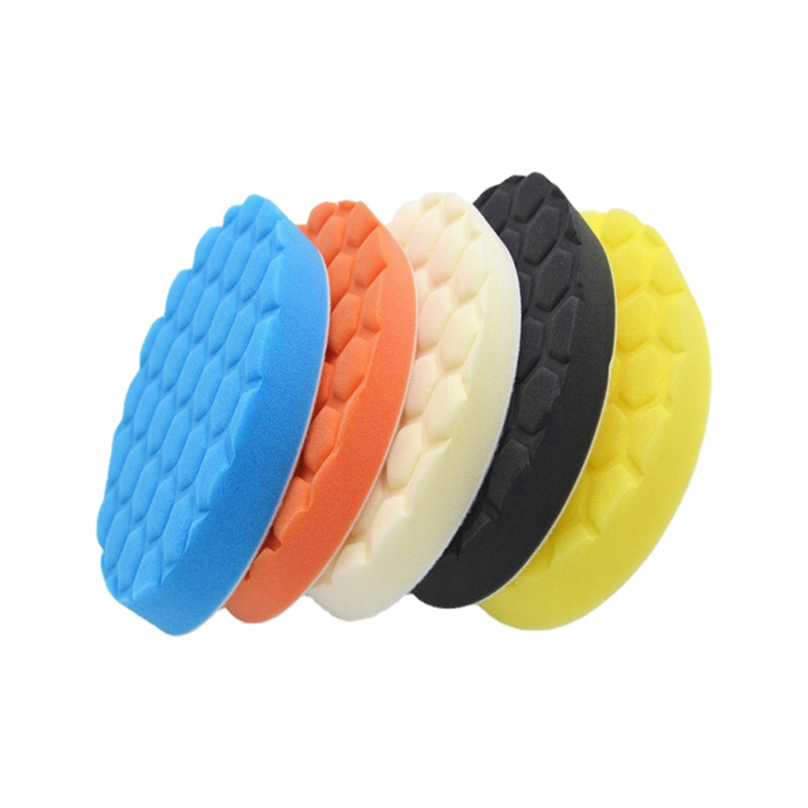 [Пакет]: Существует пять различных цветов губчатых колодок, предназначенных для полировки и очистки деталей автомобиля.
