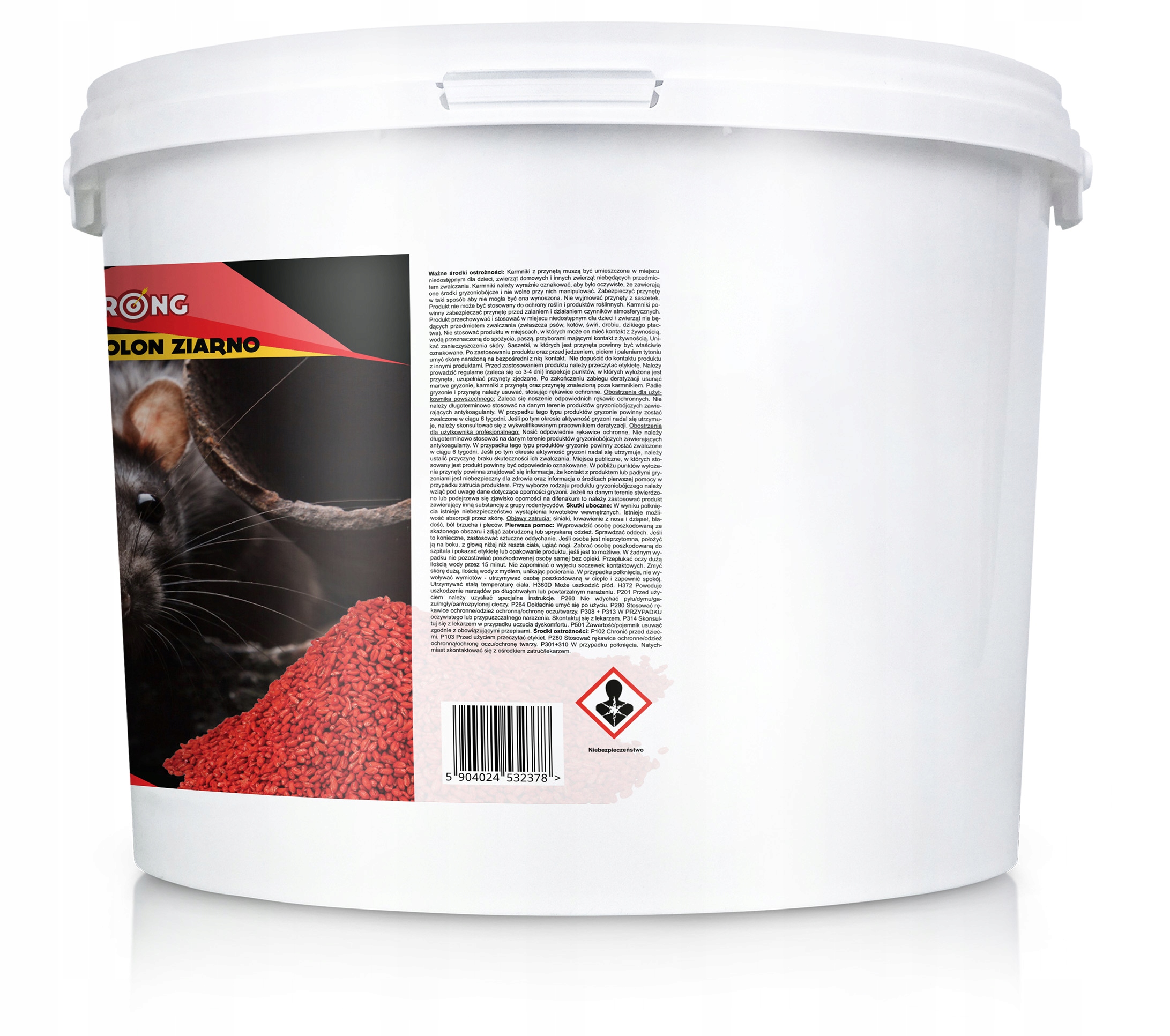 Очень эффективное грыденцид сильное зерно бромадиолона в форме привлекательного жителя отравленного зерна для борьбы с мышами и . Грызуны после принятия дозы приготовления они умирают напряженно из -за внутреннего кровоизлияния долгое время после потребления (продукт не приводит к смерти до прохождения 48 часов, даже после того, как вы получите высокую дозу) и далеко от места подкладки. Подготовка содержит bromadiolone - 100% смертельный после одного потребления. Кроме того, чтобы предотвратить случайное глотание яда, он содержит горькое вещество - bitrex - не обнаруживается для грызунов.
