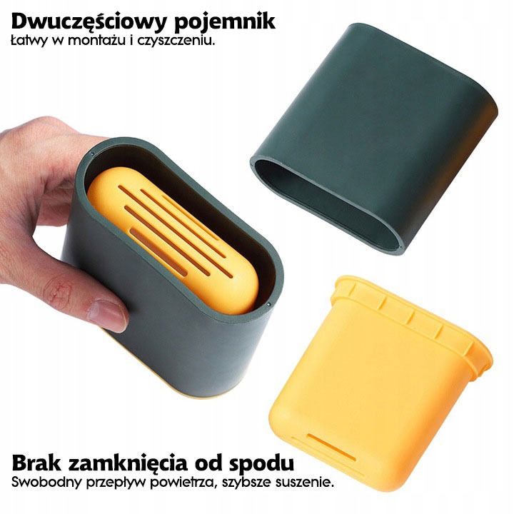 Контейнер для щетки разделен на две части, внутренняя часть для стекающей воды является съемной, благодаря чему весь контейнер остается внутри сухим и чистым. Контейнер открыт снизу, благодаря чему воздух свободно проходит и быстрее высыхает. Чтобы вода не вытекла, просто встряхните щетку или ударьте ею об унитаз, и оставшиеся капли воды соскользнут с силиконового наконечника.