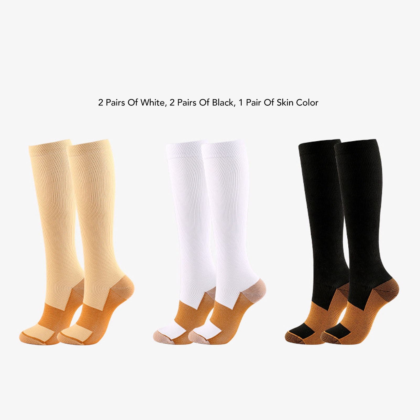 Цвет: 2 пары белых, 2 пары черных, 1 пара телесного цвета.