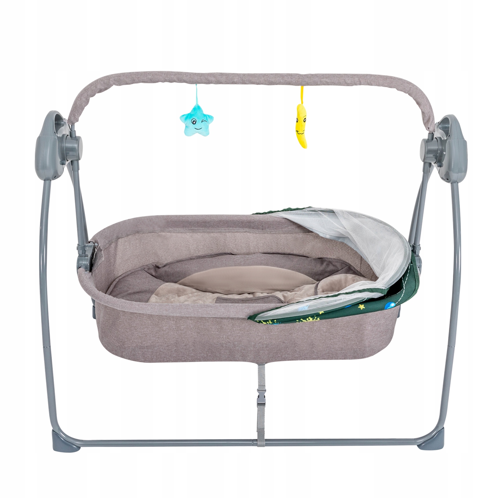 Можно использовать, чтобы уложить ребенка спать и успокоить плачущего ребенка в помещении или на улице. В этой детской колыбели также можно играть и слушать песни и сказки.