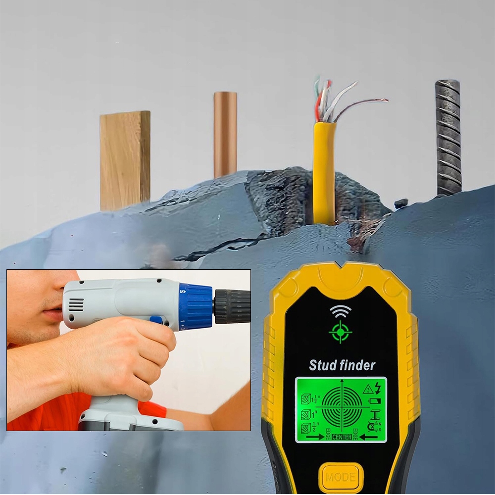 - Точный настенный металлодетектор обнаруживает материалы в более толстых стенах. крепления.