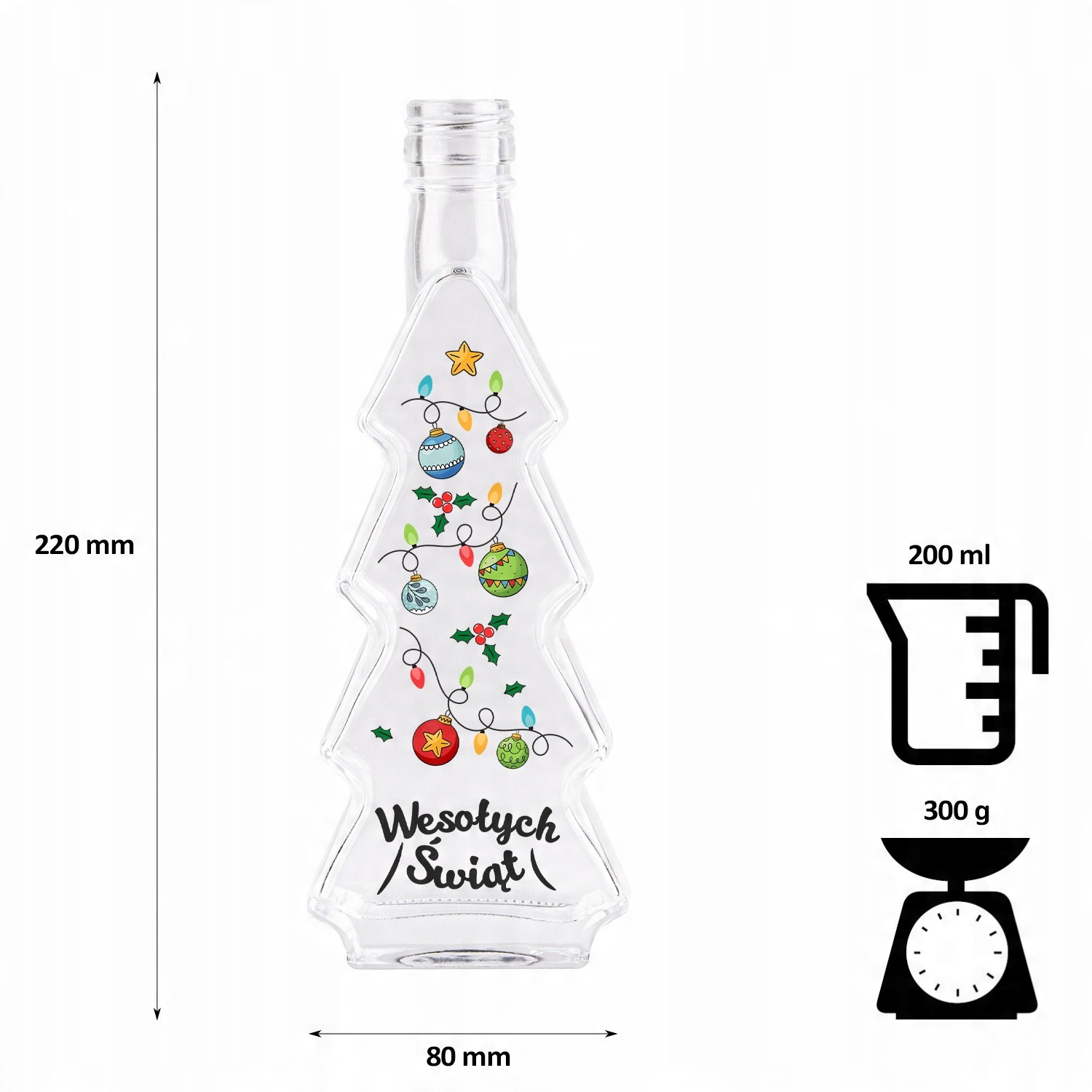 5x СТЕКЛЯННАЯ БУТЫЛКА «РОЖДЕСТВЕНСКАЯ ЕЛКА» 200 МЛ С КРЫШКОЙ, РОЖДЕСТВЕНСКАЯ С УФ-ПЕЧАТКОЙ ДЛЯ ПОДАРКА АЛКОГОЛЬ, ЛИКЕРЫ