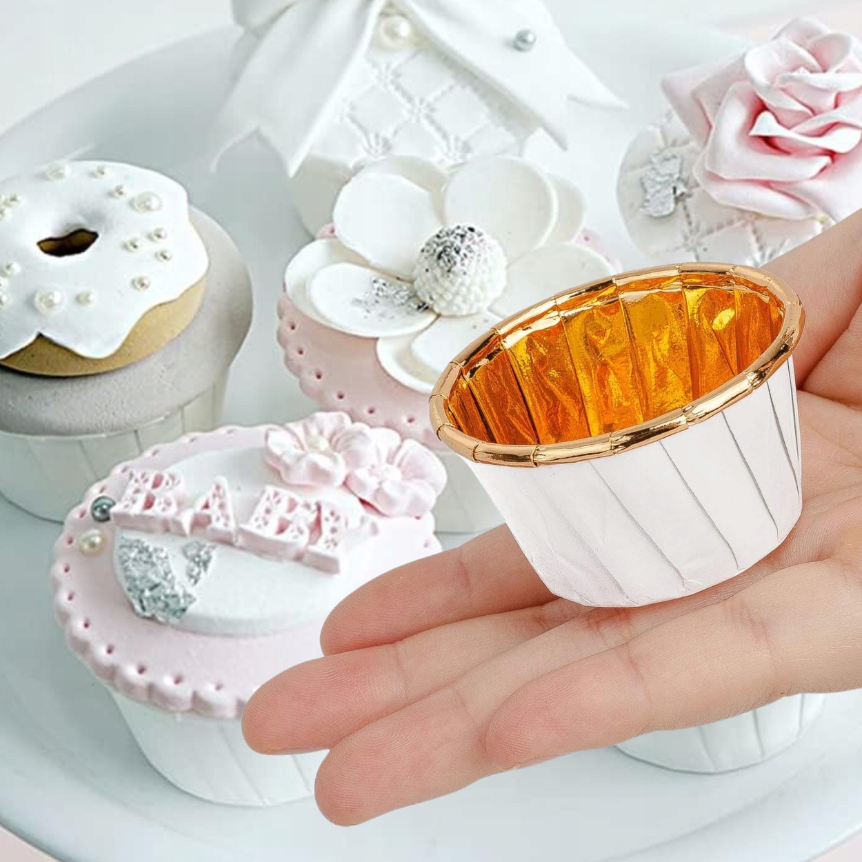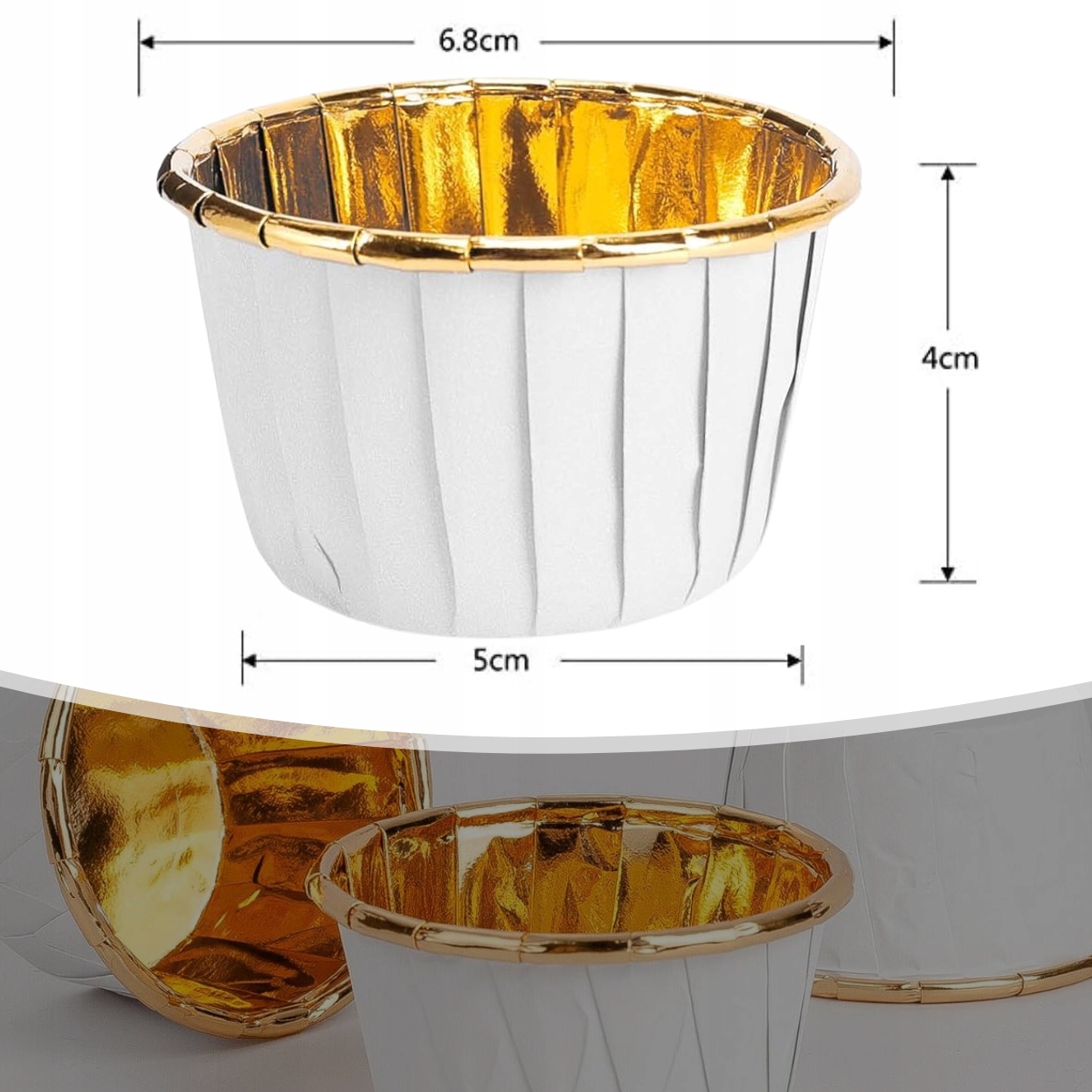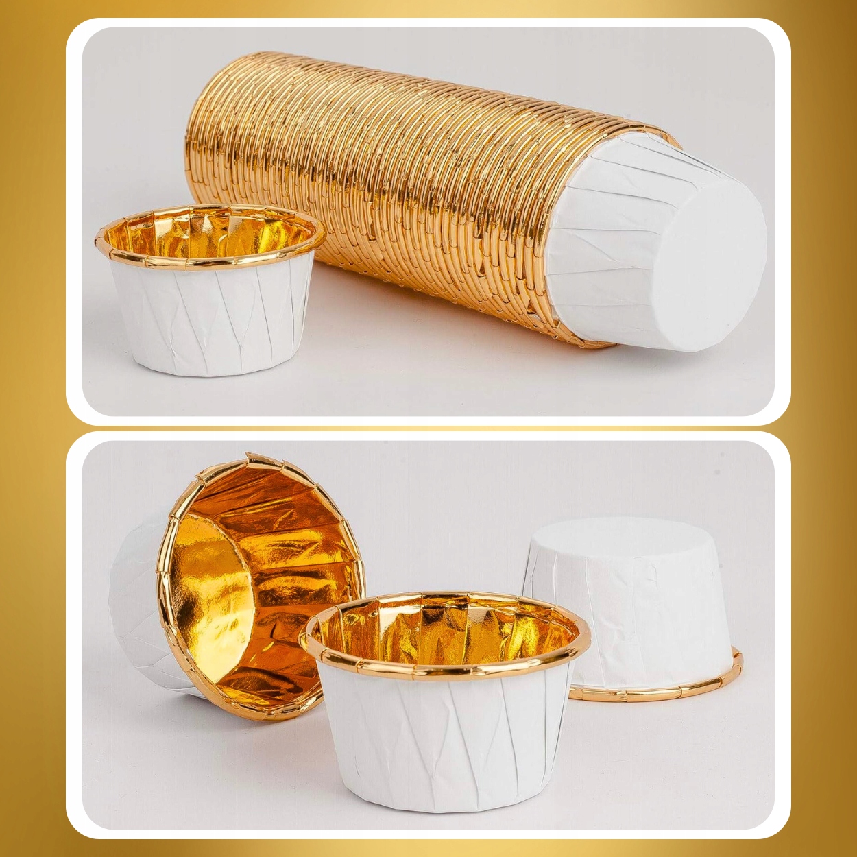 50 ЧАШЕК ДЛЯ МАФФИНОВ ОПОРЫ ДЛЯ ВЫПЕЧКИ 50х40мм БЕЛОЕ ЗОЛОТО Стиль и роскошь, благодаря чему они прекрасно смотрятся на торжественных столах, таких как свадьбы, дни рождения или корпоративные мероприятия.