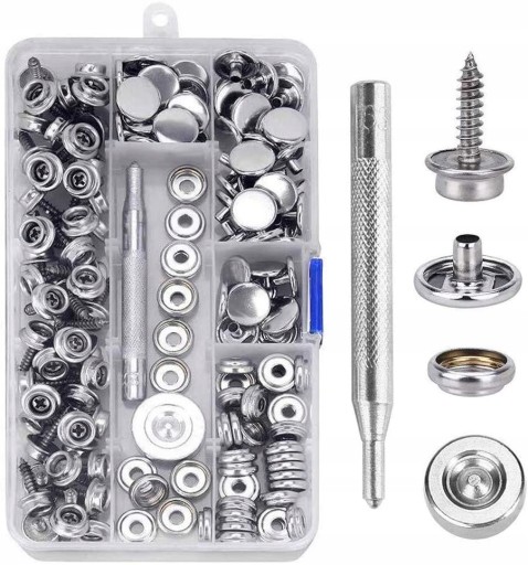 Достаточное количество: застежки-защелки. В комплект входят 50 винтов из нержавеющей стали длиной 15 мм, 50 пуговиц, 50 застежек и 2 регулировочных инструмента, которые можно адаптировать к различным материалам и случаям.