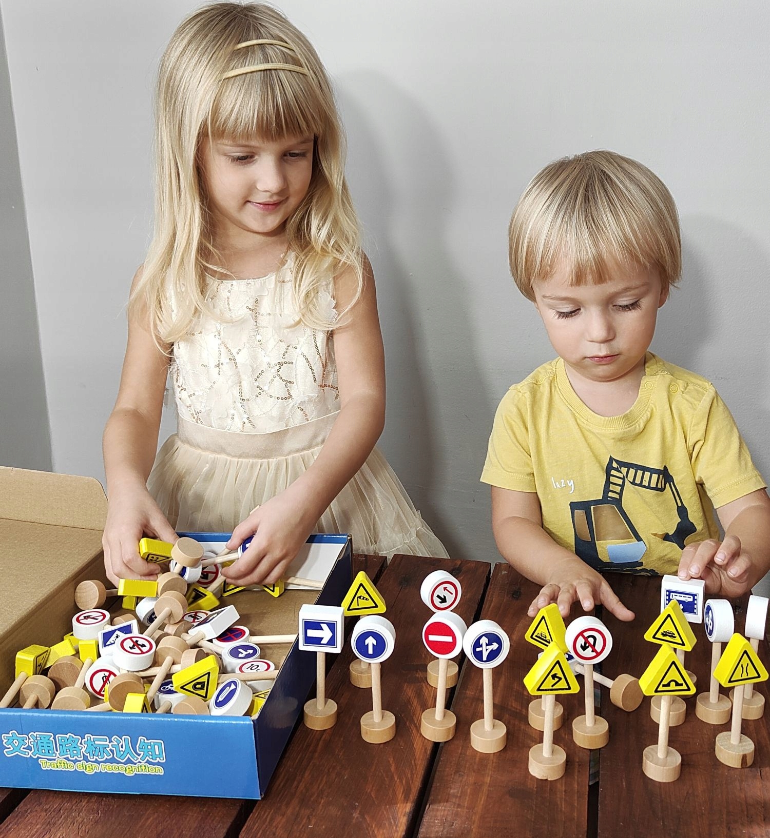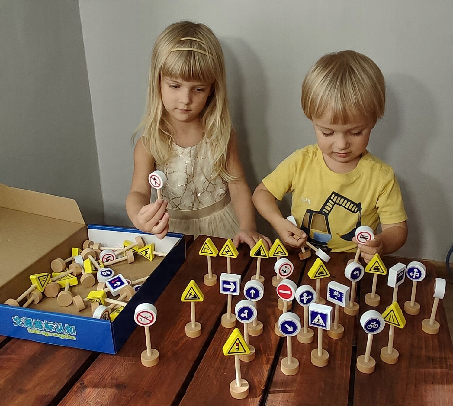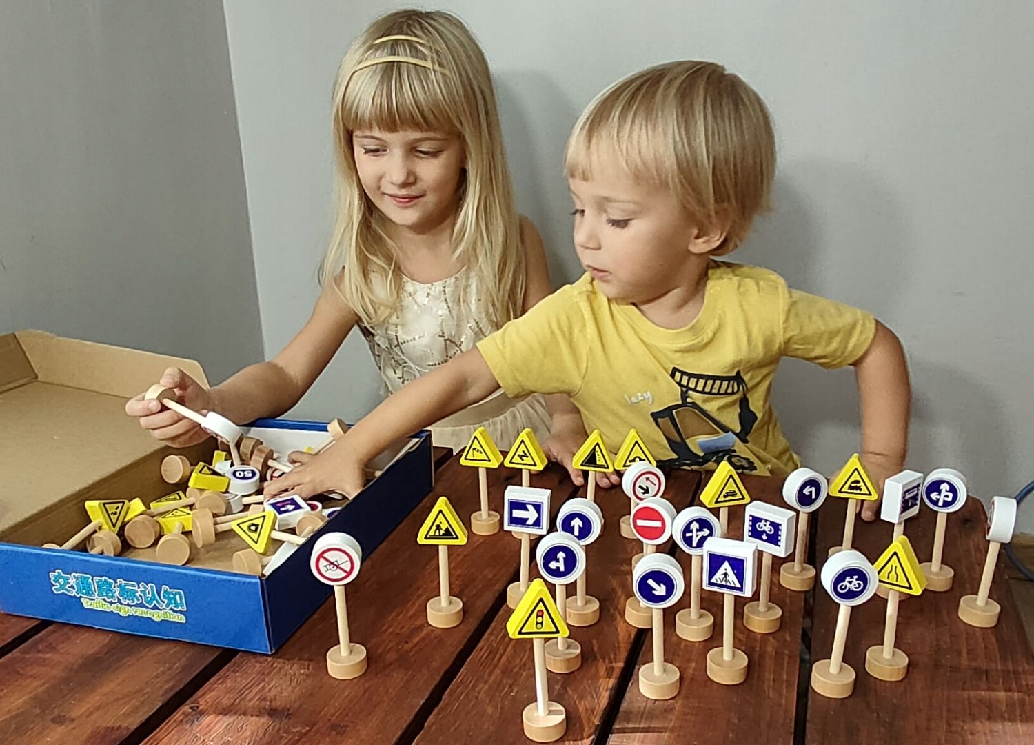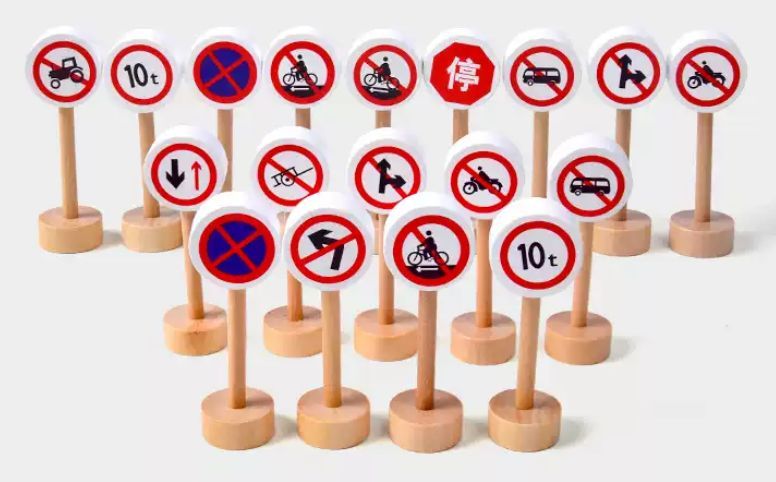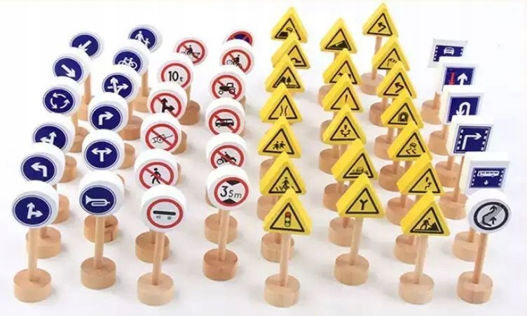 Набор деревянных дорожных знаков. Он поможет вам выучить правила дорожного движения и сделает игру с игрушечными машинками более увлекательной. В наборе 50 двусторонних табличек на подставках.