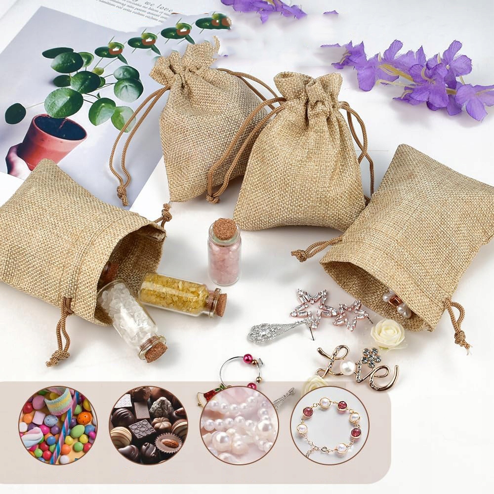 🎉🎉🎉【Различные размеры】 В комплект входят 50 джутовых мешочков, каждый размером примерно 9 см х 12 см, в него поместится множество гаджетов. Идеально подходят для использования в качестве подарочных пакетов или для хранения небольших предметов.