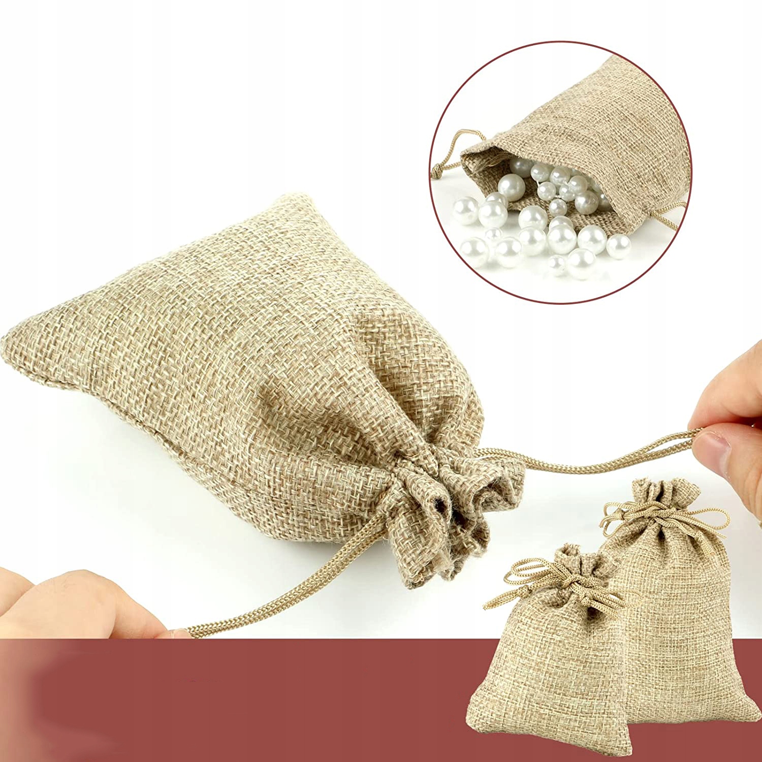 50 ШТ. ЛЛЯНІ МІШКИ 9 Х 12 СМ З ЛІНІЄЮ, ДЖУТОВІ ПОДАРУНКОВІ МІШКИ