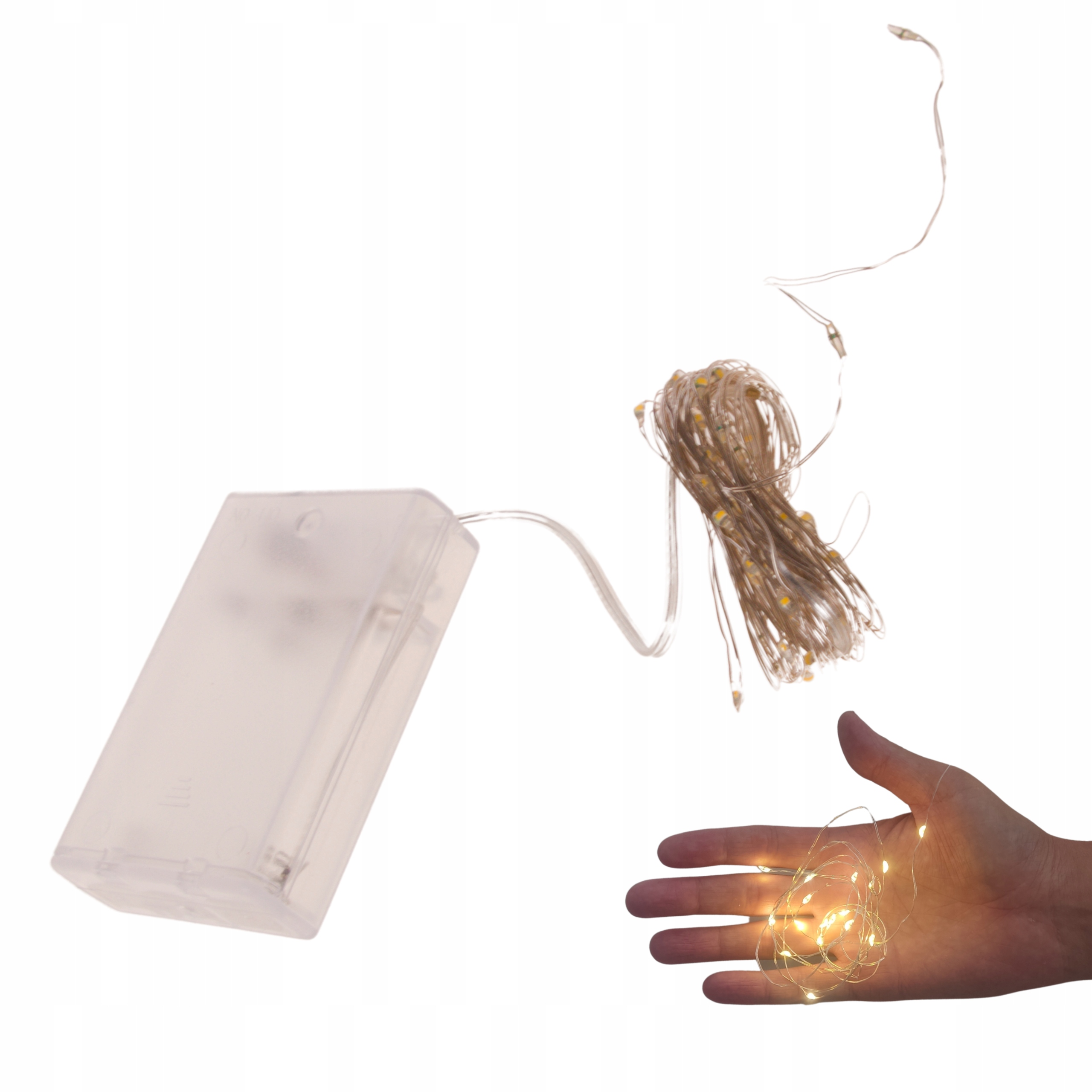 50 СВЕТОДИОДНЫХ РОЖДЕСТВЕНСКИХ ОГНИ НА ПРОВОДЕ, НА АККУМУЛЯТОРАХ, ТЁПЛЫЙ БЕЛЫЙ СВЕТ