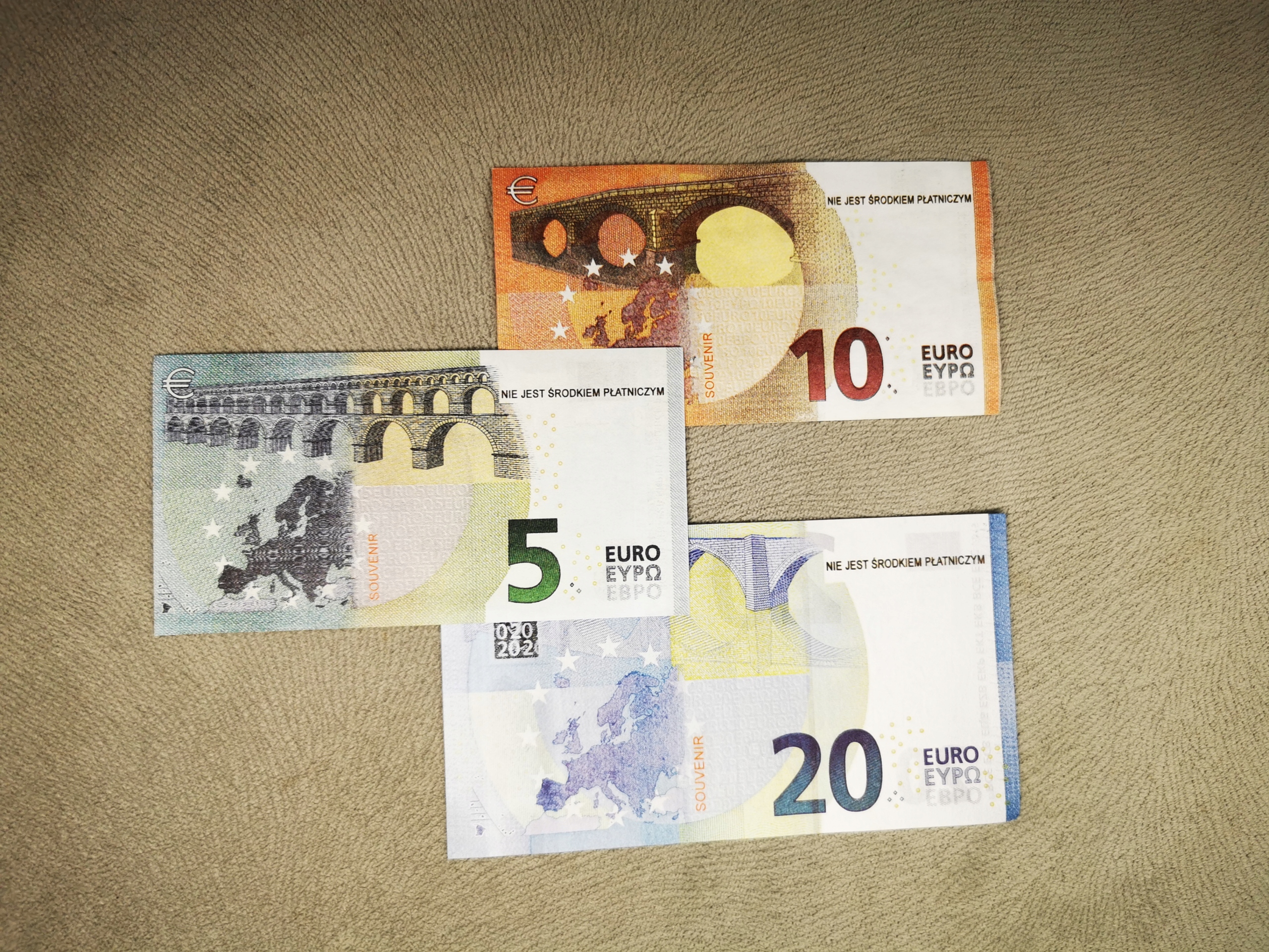 50 евро банкноты для воспроизведения и файла обучения 100sztuk + бесплатные тримирные евро -банкноты с деноминацией 5,10 и 20 (последняя фотография)