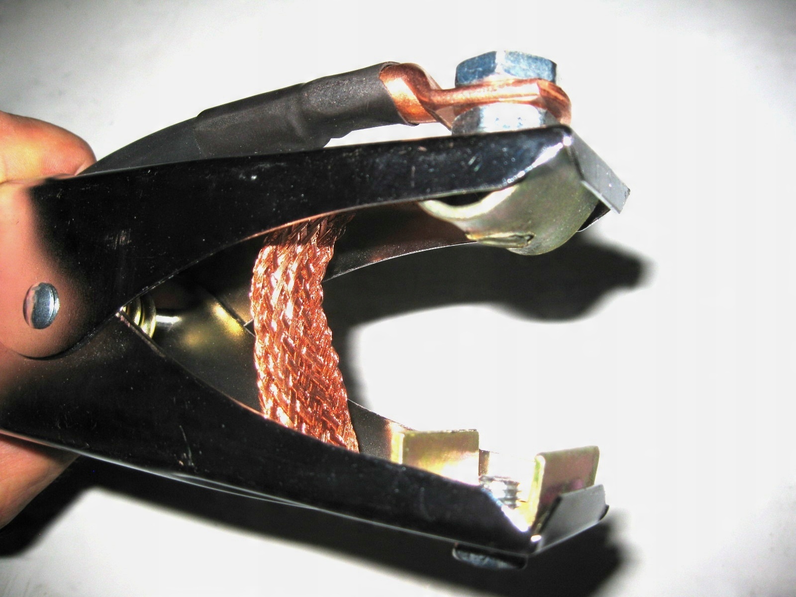 Особого внимания в наших кабелях заслуживает прочное соединение кабеля с электрододержателем (см. фото). На конце кабеля при подключении к ручке зажимаем толстые, прочные медные клеммы с помощью гидравлического пресса, что при минимальных затратах (около 5-8 злотых) защищает весь кабель от перепадов напряжения в этом критическом месте и гарантирует его эффективную работу.