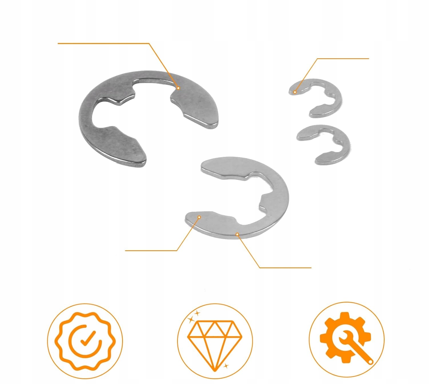 ✅ Наши стопорные кольца E изготовлены из высококачественной нержавеющей стали, обеспечивающей превосходную устойчивость к ржавчине, коррозии и растяжению. Благодаря точной обработке они имеют гладкие края и поверхность без заусенцев, прочны, долговечны, их нелегко сгибать и деформировать.
