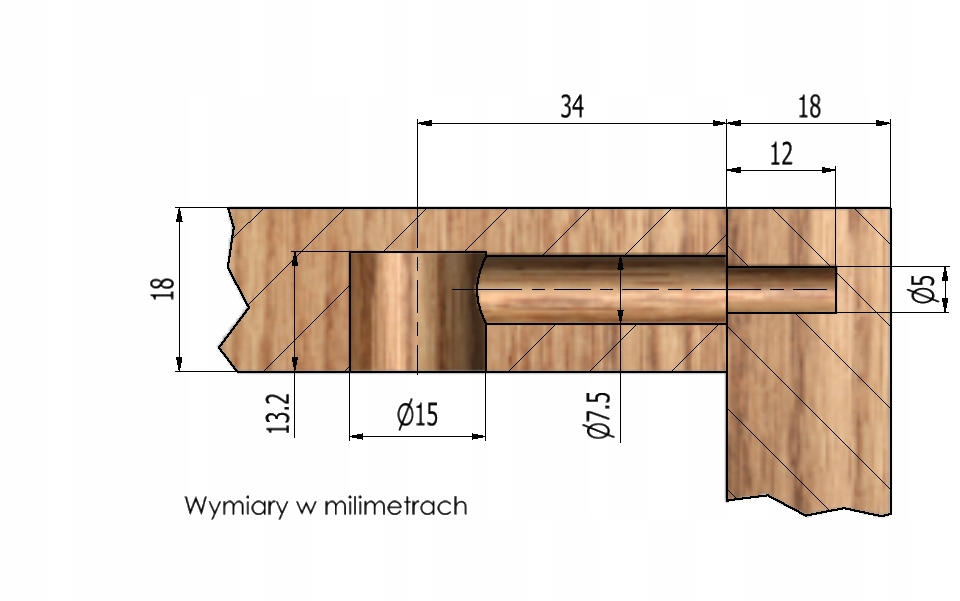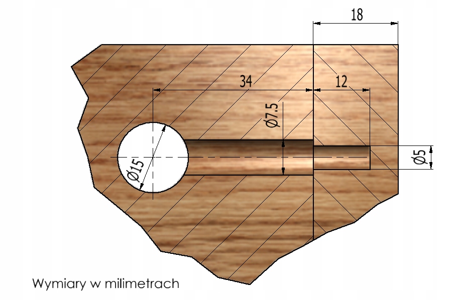 Для этого упражнения нам необходимо проделать отверстия для штифта (7,5 мм) и эксцентриков (диаметром 15 мм).