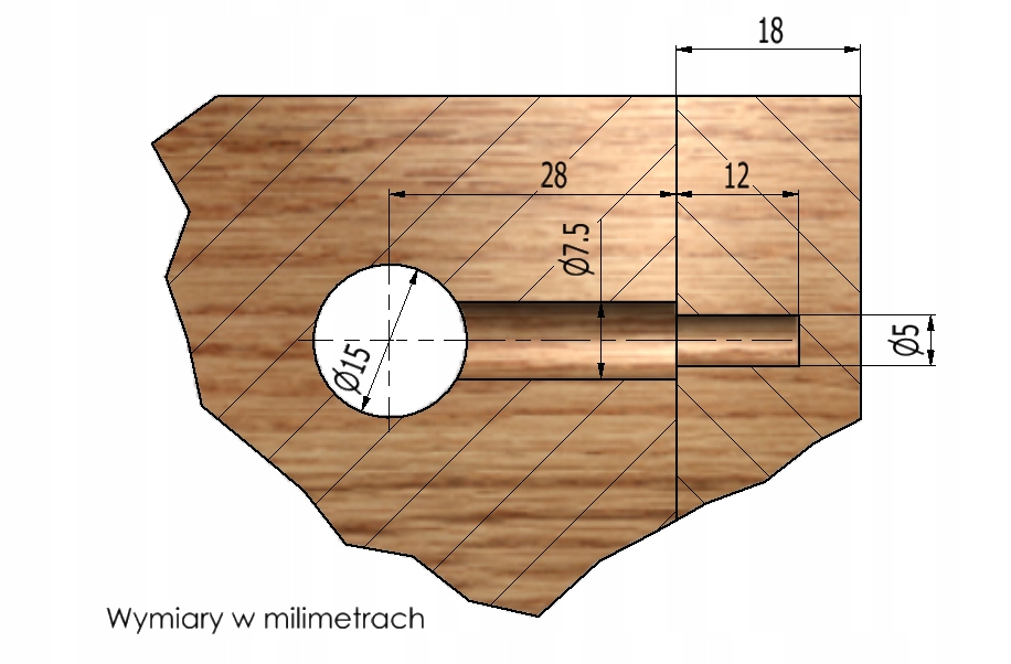 Для этого упражнения нам необходимо проделать отверстия для штифта (7,5 мм) и эксцентриков (диаметром 15 мм).