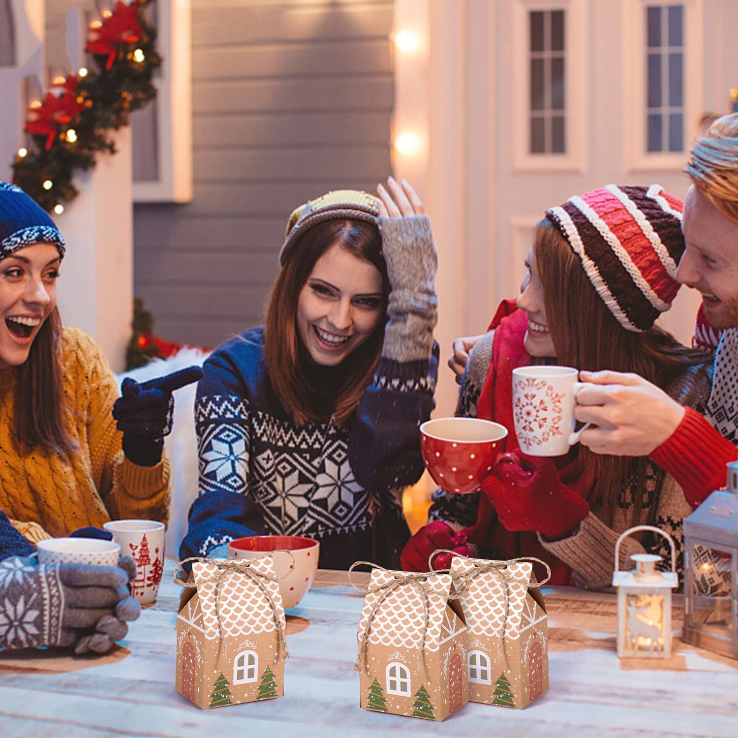 Наша сумка для рождественской вечеринки имеет форму небольшого домика, на ней напечатаны рождественские элементы, что делает ее идеальным выбором. в качестве подарочной коробки к фестивалю в этот праздничный сезон. Коробки, которые используются, чтобы произвести впечатление на семью, друзей и гостей на рождественской вечеринке.