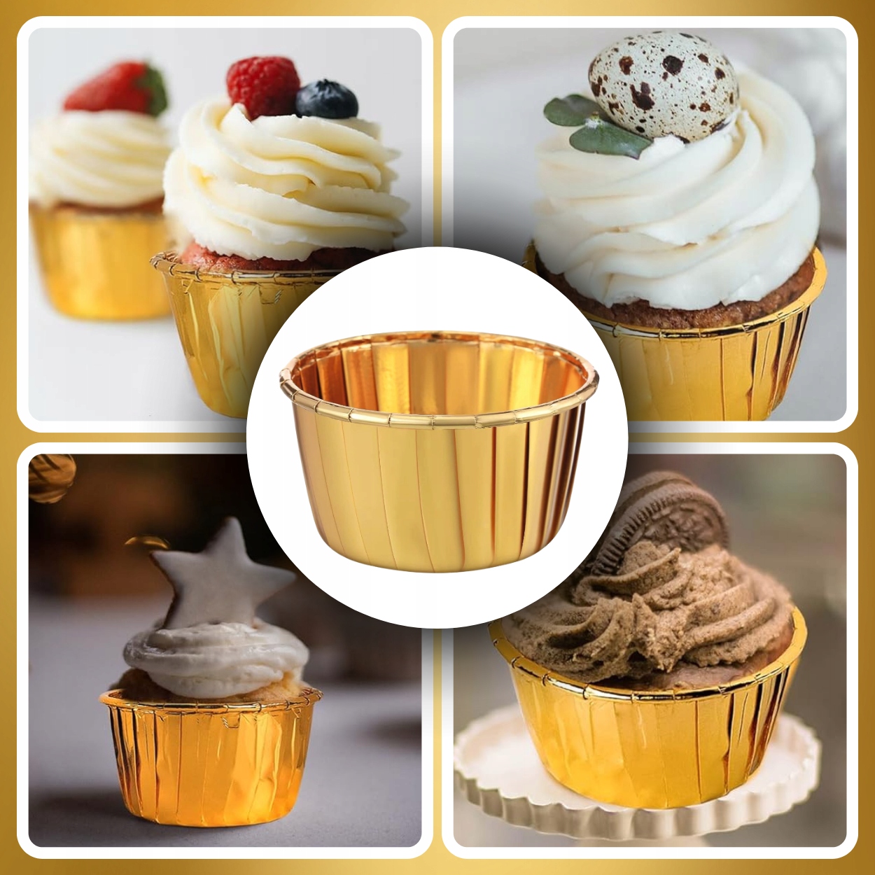 ✔️Идеально для торжеств:Золотые формочки для кексов идеальны для особых случаев, таких как свадьбы, дни рождения или корпоративные мероприятия, придавая выпечке престижный вид.