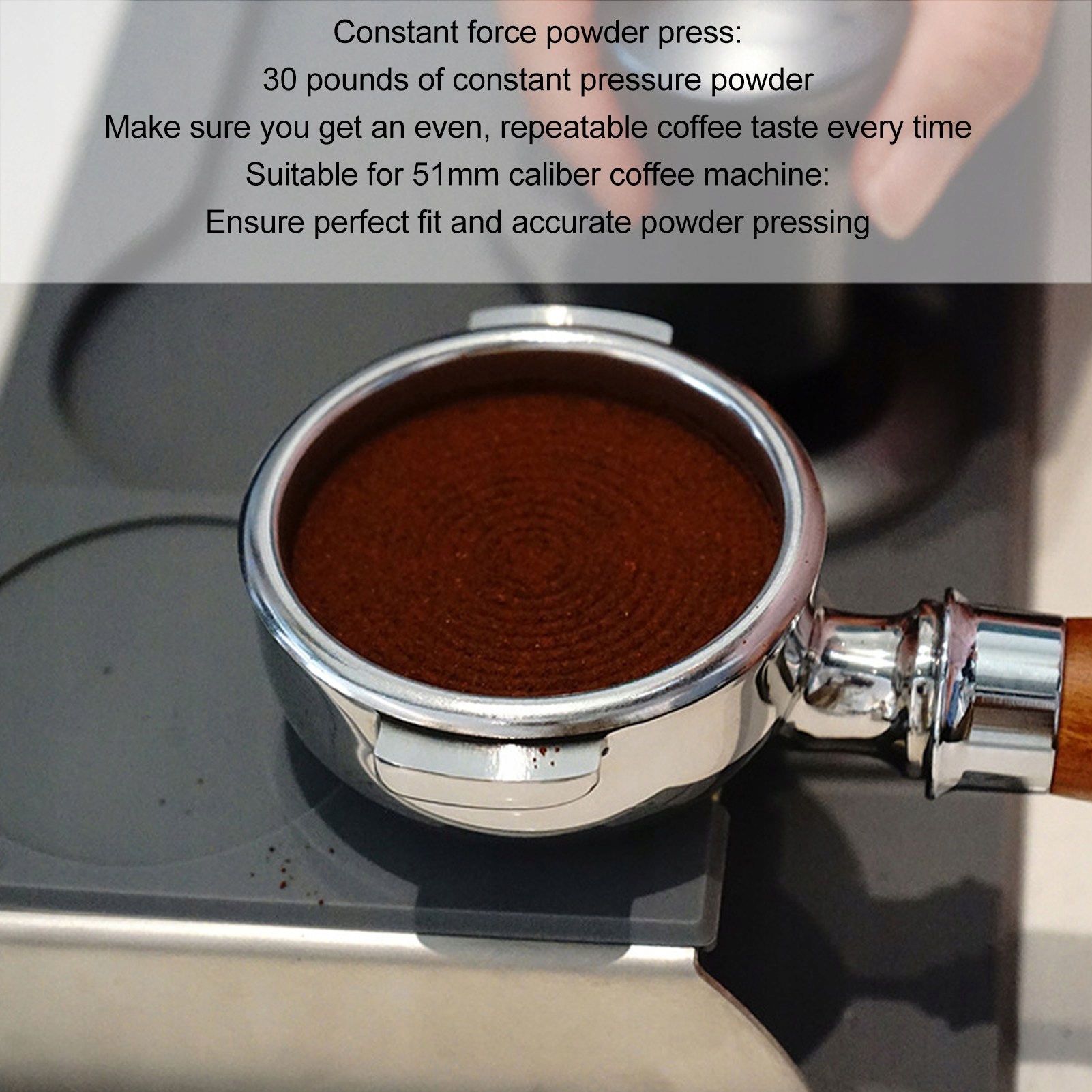 4. Непоколебимое давление: этот манипулятор, разработанный с использованием запатентованного механизма постоянной силы на 30 фунтов, обеспечивает равномерное распределение давления при каждом использовании, позволяя пользователям точно воссоздать предпочитаемый ими вкус кофе.