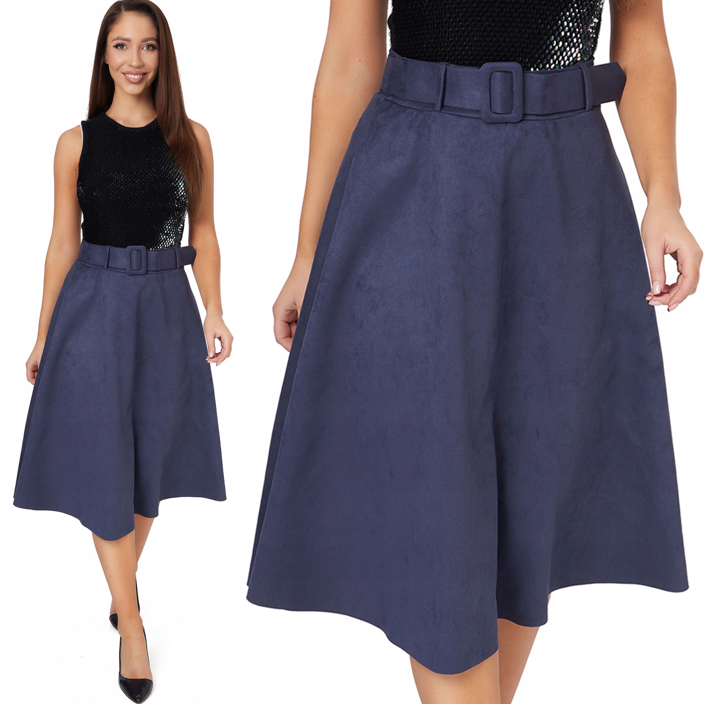 526_ ЕЛЕГАНТНА ЗАМШЕВА СПІДНИЦЯ МІДІ З ПОЯСОМ