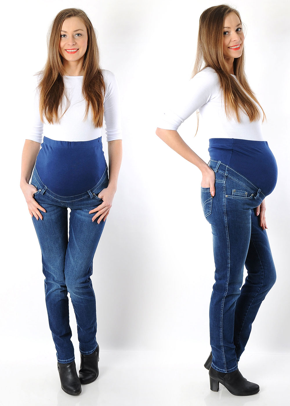 - Брюки для беременных из джинсовой ткани