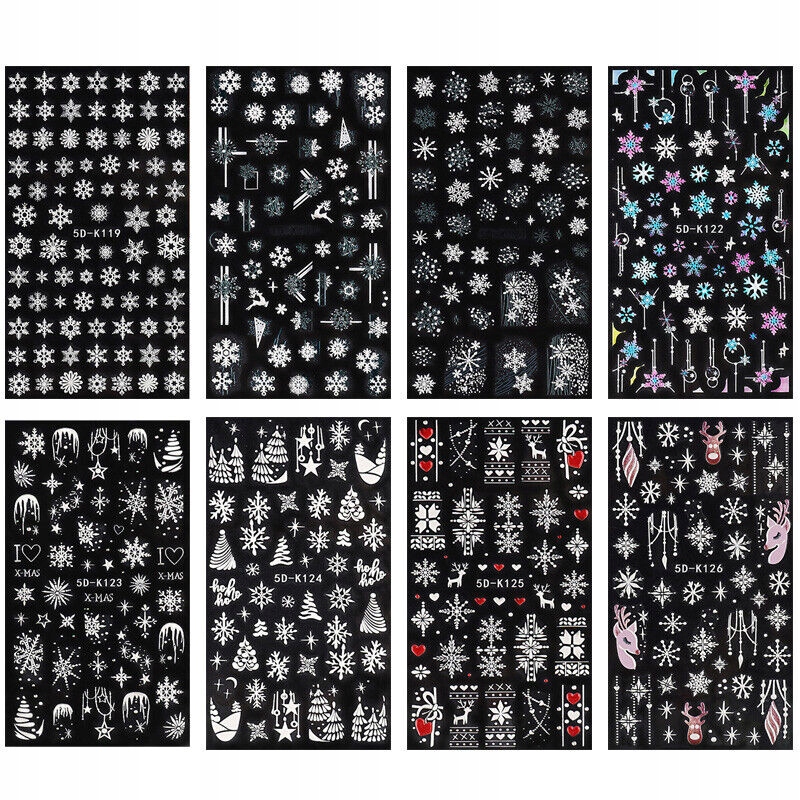 5D рождественские наклейки для ногтей белые снежинки зима E120