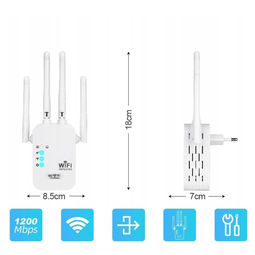 🛜 【wi-fi-усилитель】 Вы получите скорость до 1200 мб/с, что позволит плавно просмотреть Интернет, плавное потоковое передачу фильмов и играть в онлайн-игры без каких-либо перерывов. WPS Конфигурация устройства чрезвычайно проста и интуитивно понятна. Легко подключитесь к Интернету. Стандарты WPA/WPA2 и WPA-PSK/WPA2-PSK, обеспечивая конфиденциальность и безопасность ваших данных. Выберите маршрутизатор, клиент, мост (WIDS), усилитель и точку доступа к AP, чтобы адаптироваться к вашим потребностям Продукт】