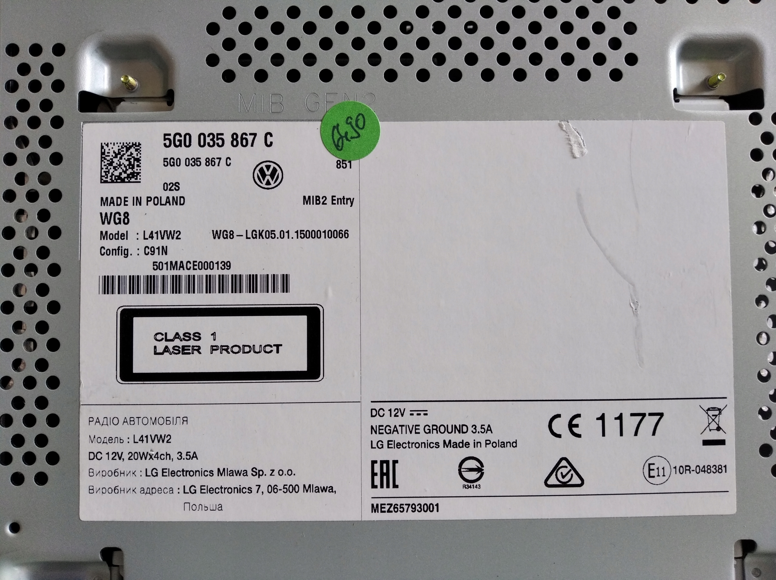 Приобретая «5G0035867C ЭКРАН РАДИО VW GOLF VII» данный товар из каталога «Радиоприемники» вы можете быть уверены, что после оформления заказа, доставки в Украину, вы получите именно то, что заказывали, в оговоренные сроки и европейского качества.