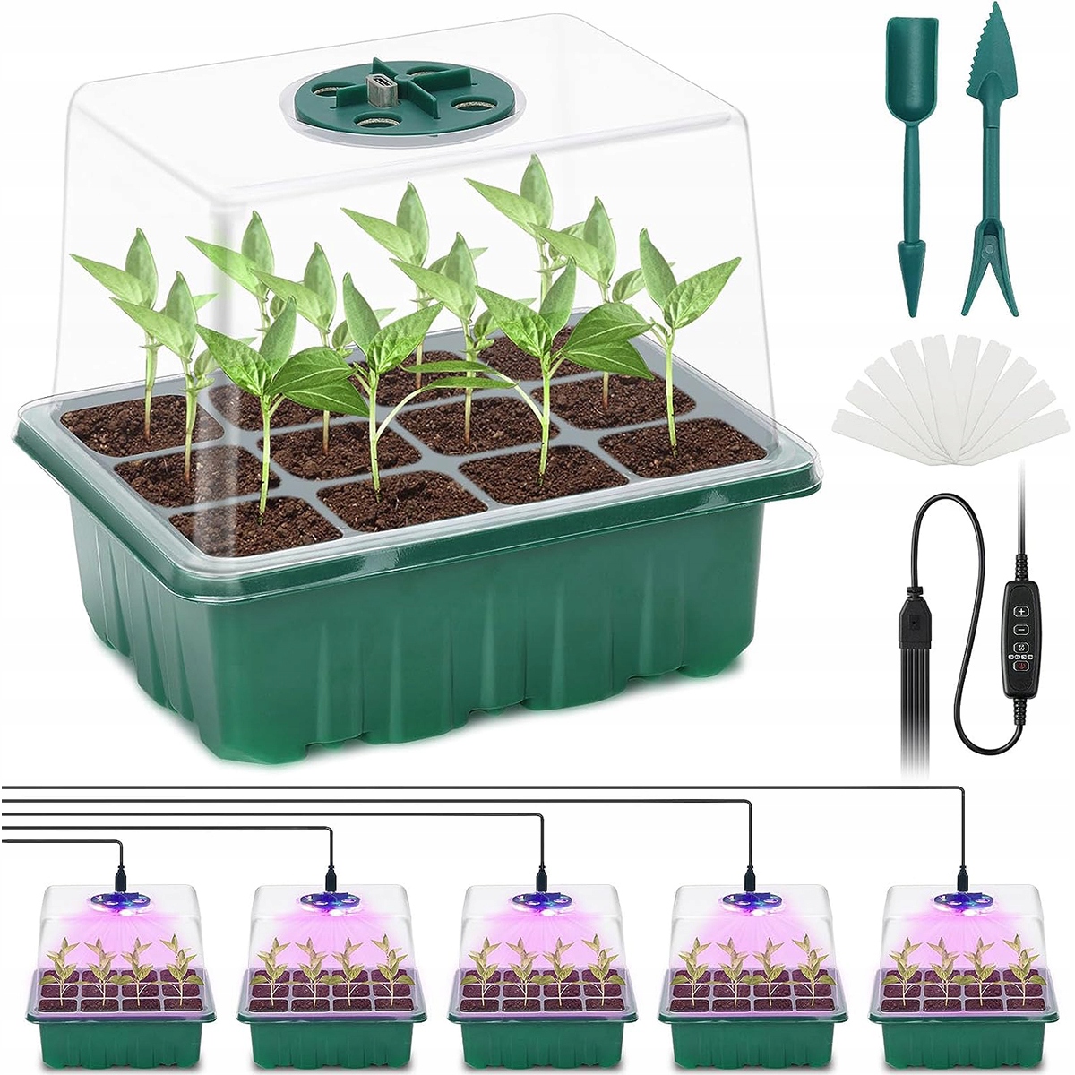 5x TACE STARTOWE DO UPRAWY ROŚLIN NASION KWIATÓW MINI SZKLARNIE LAMPY 8LED