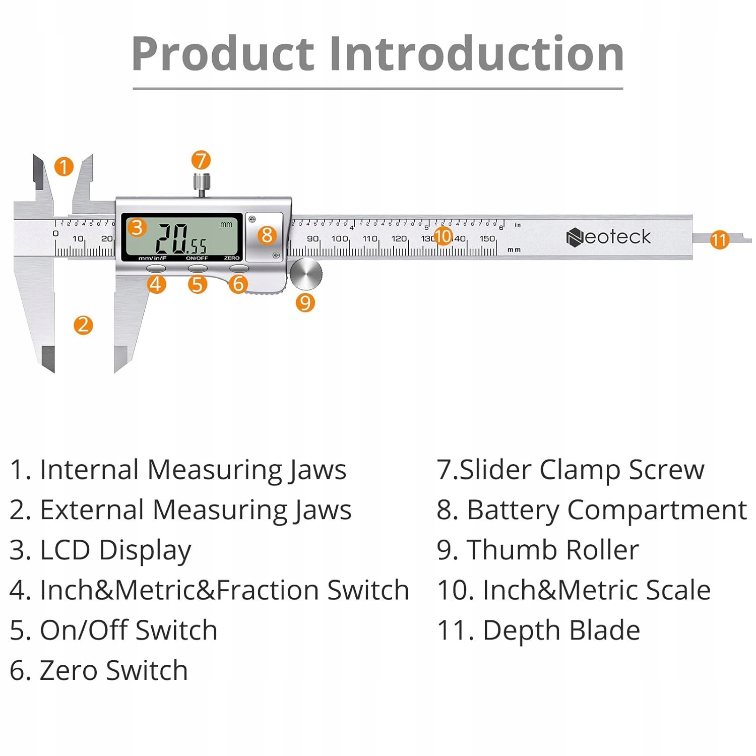 6-дюймовий (прибл. 15,2 см) набір цифрових штангенциркулів Neoteck