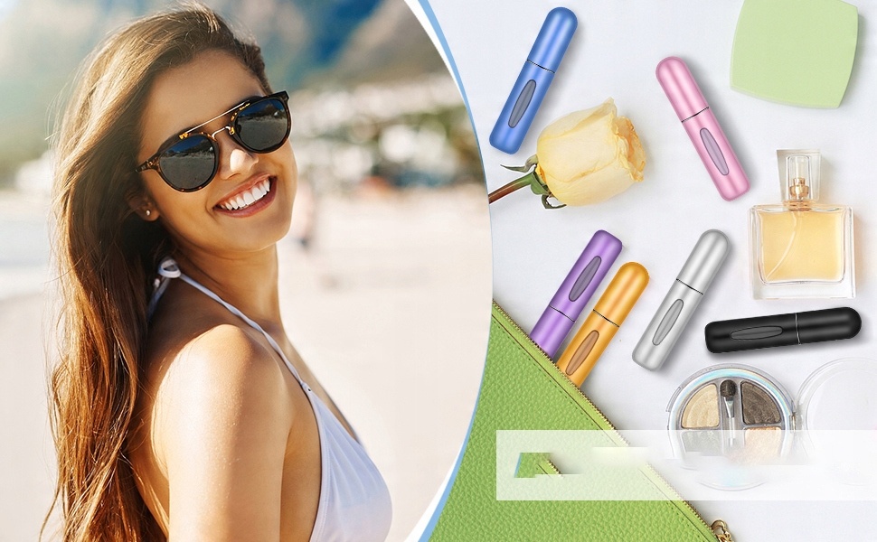 【ПУТЕШЕСТВЕННЫЕ ТУАЛЕТЫ】 Размер флаконов для духов Travel составляет 80,3 x 16,5 x 16,5 мм, а емкость – 5 мл. Легкий и прочный алюминиевый материал делает этот распылитель идеальным для размещения в сумочке или кармане. Легко и может использоваться практически со всеми стандартными флаконами для духов! Предметы первой необходимости для женщин. В дорожных распылителях должны быть дорожная косметика, дорожные флаконы для туалетных принадлежностей, мини-флаконы, гаджеты для женщин, парфюмерия для путешествий, многоразовые наполнители для чулок.