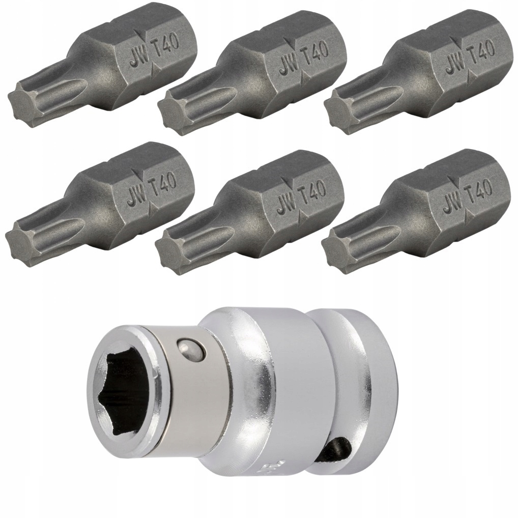 6× Końcówka Torx T40 10x30mm Jonnesway D130T40 + ADAPTER 1/2 DO BITÓW 10mm 6-KAT Jonnesway