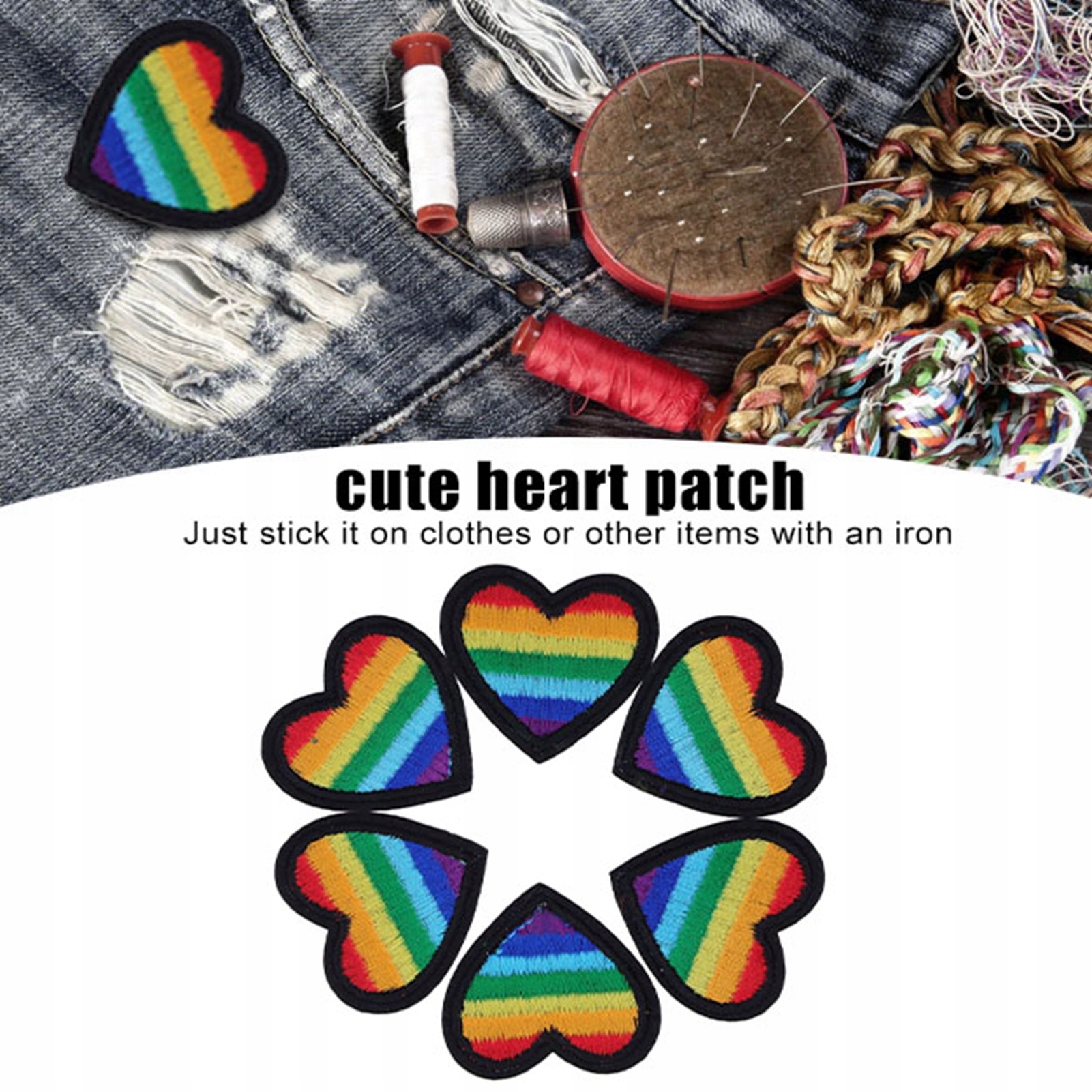 2. Легкий в использовании: каждая красочная наклейка в форме сердца имеет таяющий клей, тает после нагрева, просто приклейте ее на одежду или другие предметы с железом. Обратите внимание на контроль температуры железа; Кроме того, вы можете сшить патч на одежду, чтобы получить более стабильный эффект.
