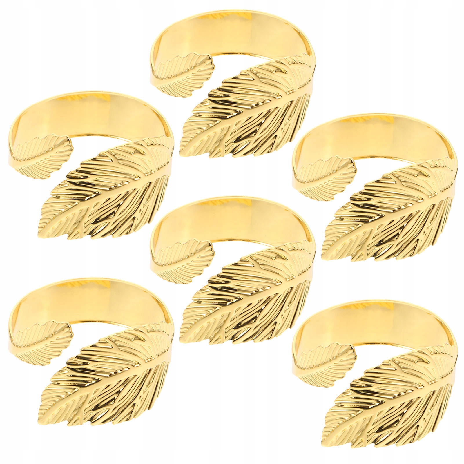 6 ШТ. МЕТАЛЛИЧЕСКИЕ КОЛЬЦА ДЛЯ САЛФЕТОК УКРАШЕНИЕ СТОЛА С ЗОЛОТЫМИ ЛИСТЬЯМИ